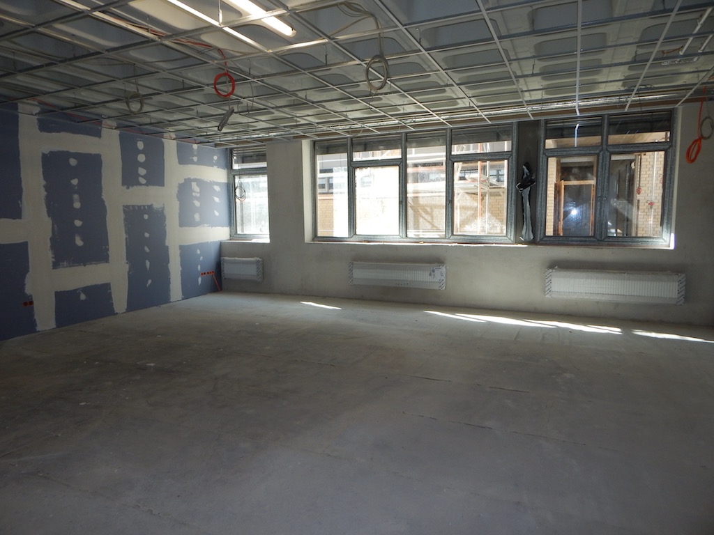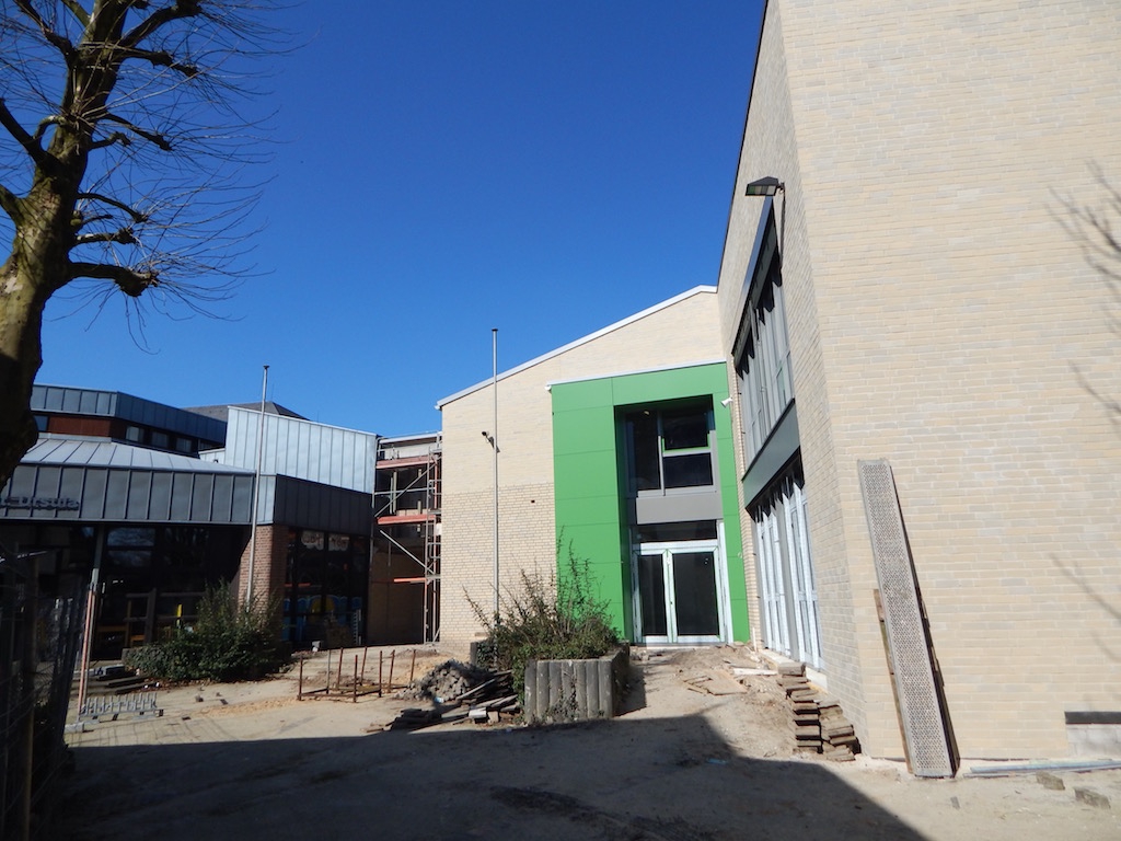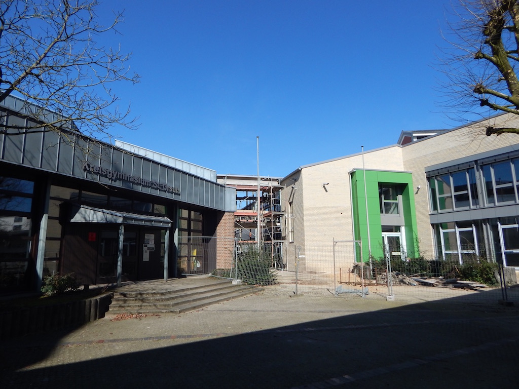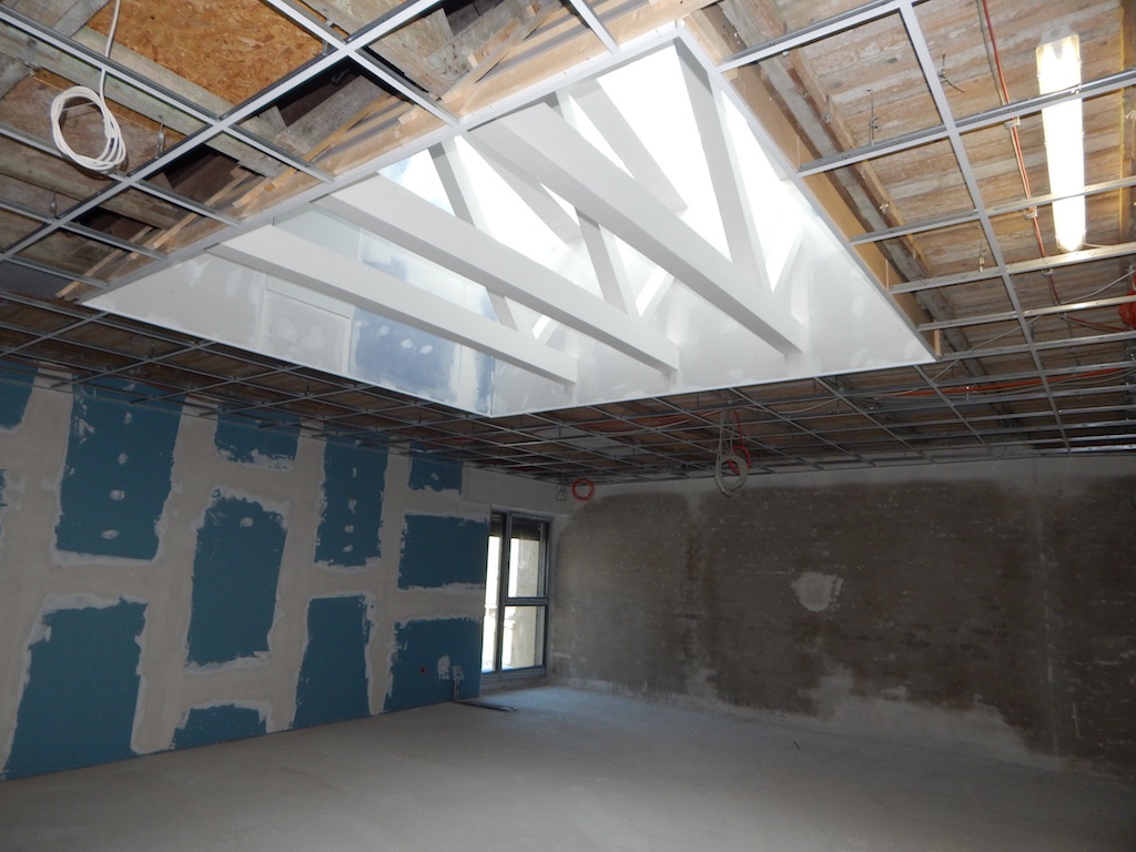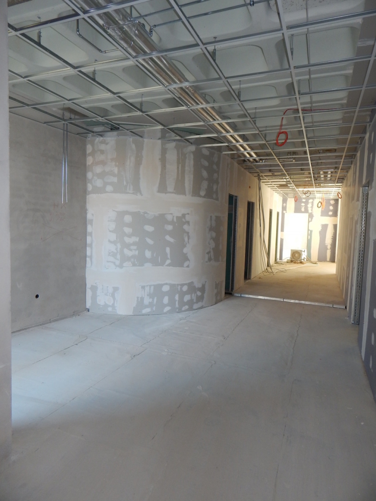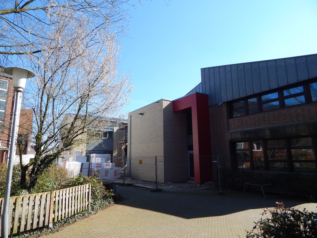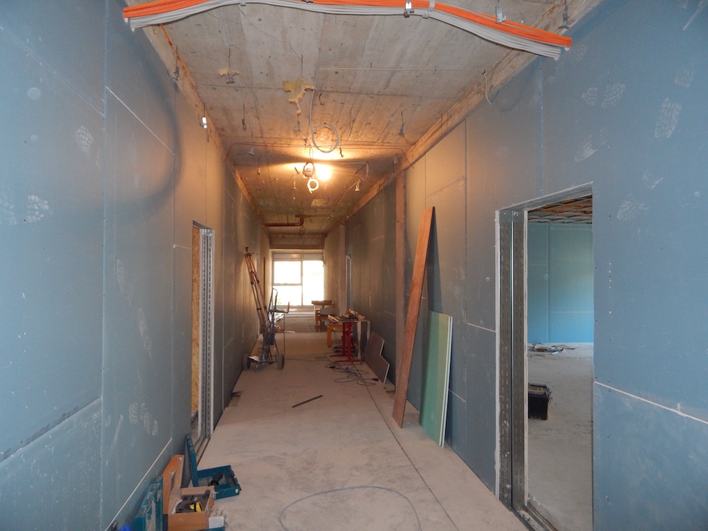 Die im letzten Sommer begonnenen großangelegten Renovierungs- und Umbaumaßnahmen am B-Gebäude gehen zügig voran. Die Trockenbauwände sind bereits eingezogen und vermitteln ein gutes Gefühl für die neuen räumlichen Gegebenheiten, die nach den Sommerferien für den Unterricht bereitstehen sollen. So werden sich im B-Gebäude im Anschluss an die Renovierungen 10 moderne Klassenräume befinden. Besonders der früher sehr dunkle Kursraum B205 wurde bereits durch ein großes Oberlicht deutlich aufgewertet.