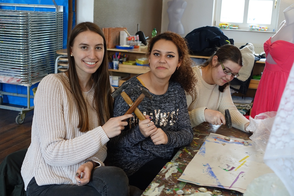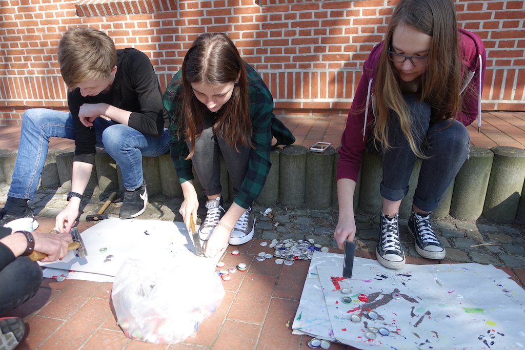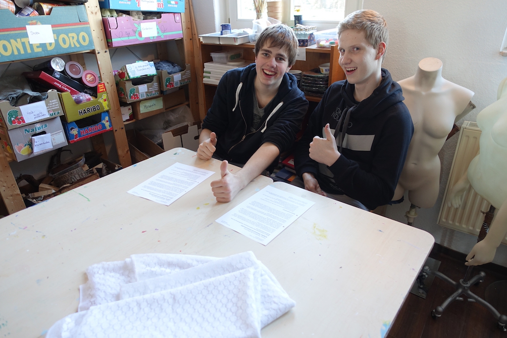 Drei verschiedene Partner haben sich für diese Kunstaktion zusammengefunden: das Modehaus Schröder, welches dieses Jahr sein 150jähriges Jubiläum feiert, die Kunstschule mit ihrer Dozentin Susanne Rogalla-Kenkel mit ihrer ausgefallenen Idee, sowie die Klasse 10a des Kreisgymnasiums St. Ursula und ihrem Kunstlehrer Axel Gielsdorf. Gearbeitet wurde in den Räumen der Kunstschule im Bahnhof Haselünne.