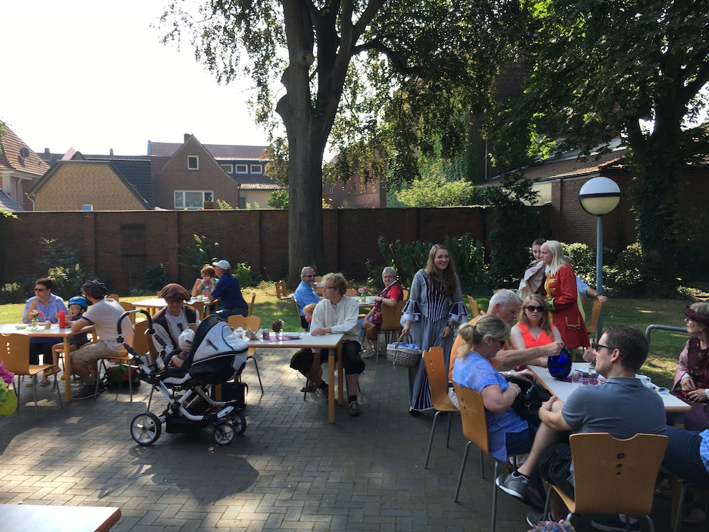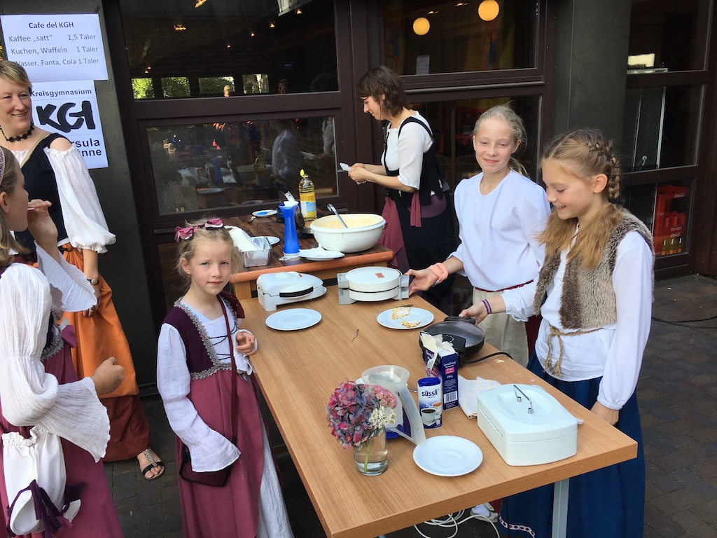 Bei bestem Wetter fand an diesem Wochenende wieder der Korn- und Hansemarkt statt. Zum ersten Mal war in diesem Jahr auch das KGH mit einem Cafe vertreten. In gemütlicher und schattiger Atmosphäre konnte man mit etwas Distanz zum ganz großen Trubel Kaffee, Kaltgetränke, Waffeln und selbstgebackenenen Kuchen genießen.