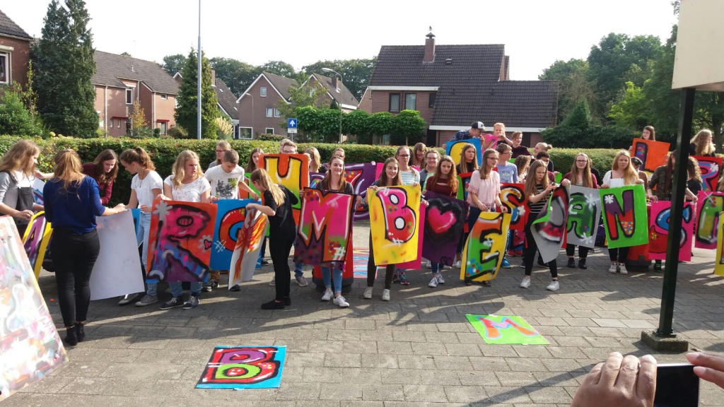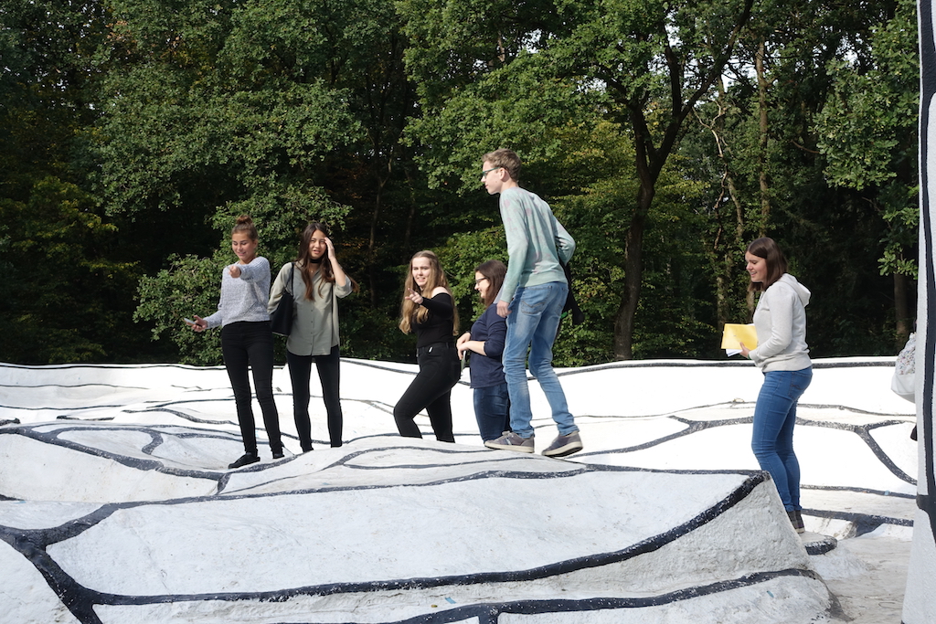 Am 22.09.2016 fand der traditionelle Schüleraustausch ausgewählter Kunstschüler und Kunstschülerinnen des 10. Jahrgangs mit dem Lambert Frankens College in der niederländischen Partnerstadt Elburg statt. Nach einem gemeinsamen Besuch des international renommierten Kröller-Müller-Museums bei Arnheim, das alle Beteiligten besonders mit der begehbaren Skulptur von Jean Dubuffet sehr beeindruckte, wurden die Schülerinnen und Schüler in einem Graffiti-Workshop selbst künstlerisch aktiv. Ein kleiner Rundgang durch die historische Innenstadt Elburgs rundete die gelungene Kunst-Exkursion ab, wobei die freundschaftlichen Begegnungen mit unseren Nachbarn aus den Niederlanden besonders in Erinnerung bleiben werden.