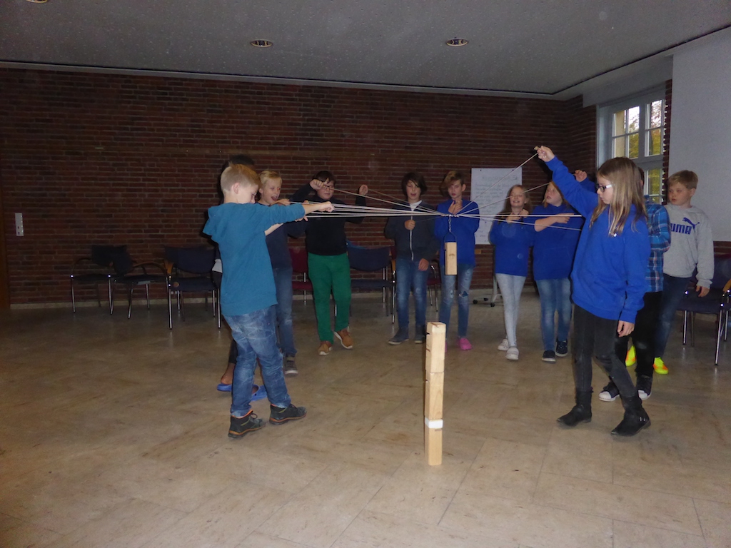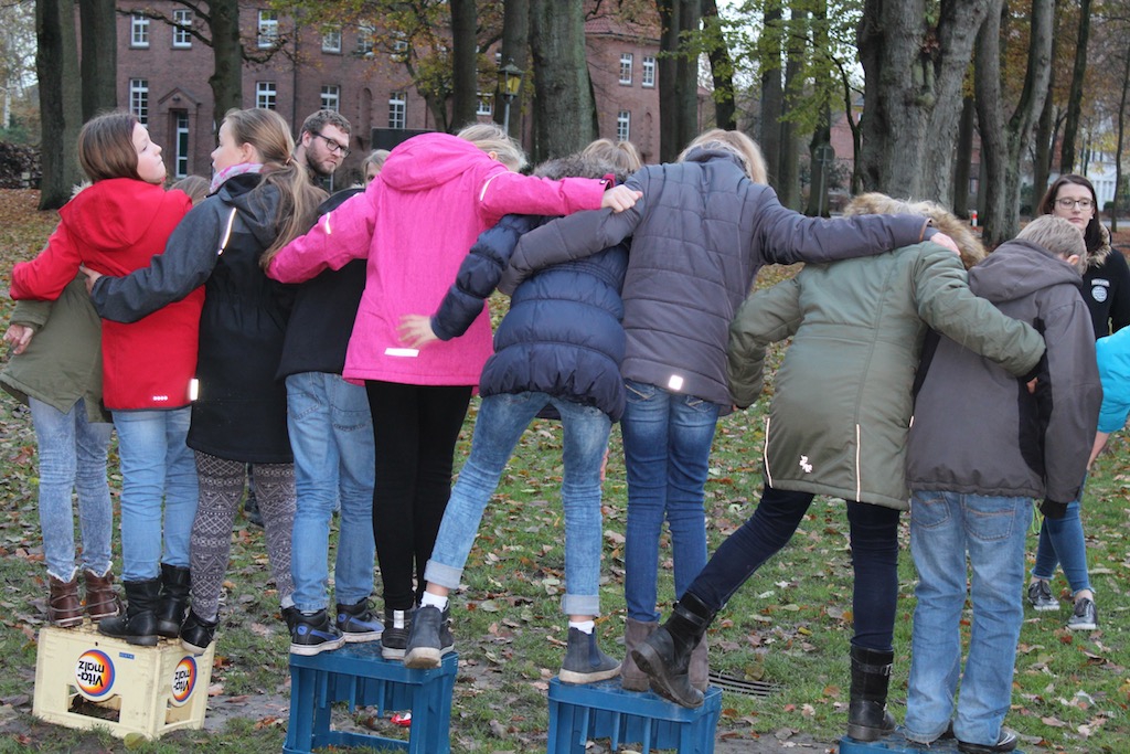 Je nach den Wünschen der Klassen beschäftigten sie sich individuell auf spielerische Art mit Themen wie Klassengemeinschaft oder dem Umgang mit Konflikten. Die hierzu von den Teamern vorbereiteten Spiele und Aktionen reichten vom gemeinsam