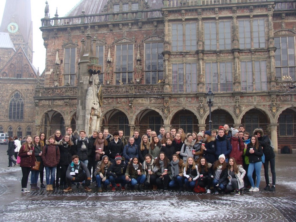 Schüler und Lehrer des Lycée de Haute Auvergne in Saint-Flour verbrachten im Rahmen des Schüleraustauschs eine Woche an unserer Schule. Neben dem Besuch des Unterrichts standen dabei einige Exkursionen auf dem Programm. So besuchten Gäste und Gastgeber am 17. Januar Bremen. Weitere Exkursionen führten sie u.a. ins Museumsdorf Cloppenburg und zur Meyer Werft nach Papenburg. Natürlich stand auch der traditionelle dt.-frz. Abend wieder mit auf dem Programm.