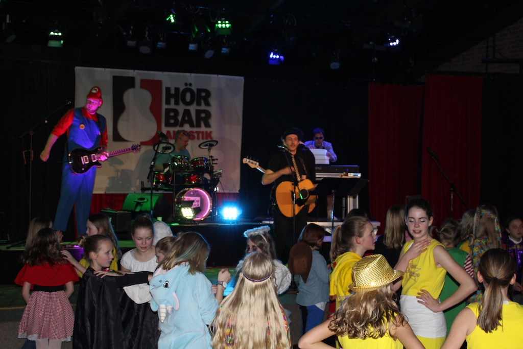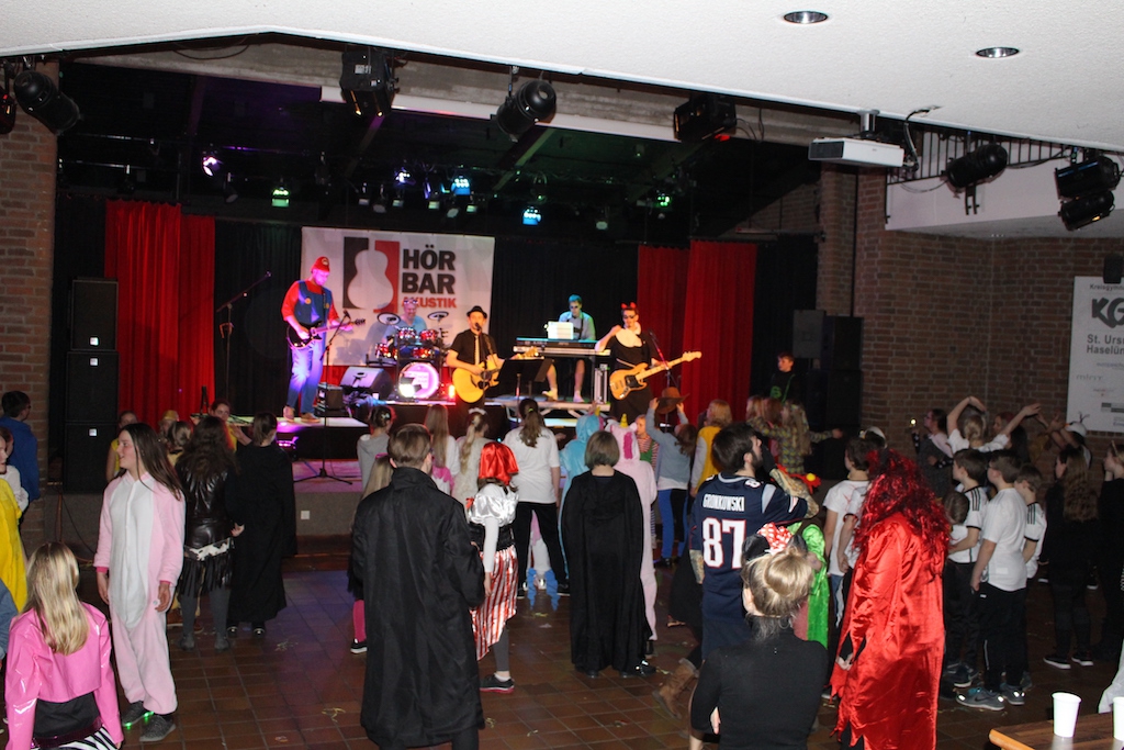 Neben Hot Dogs und kostenfreien Softdrinks sorgte unter anderem die Band „HÖRBAR Akustik“ mit ihrer Livemusik für tolle Stimmung und motivierte die Jugendlichen zum Tanzen. Genauso animierten die Vertreter der SV mit Partyspielen und sorgten so insgesamt für eine heitere und gelungene Karnevalsfeier.