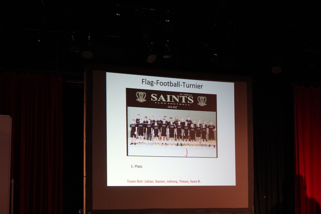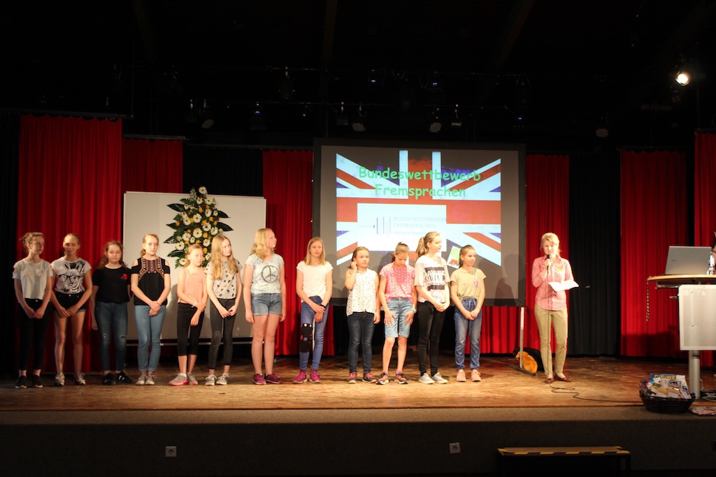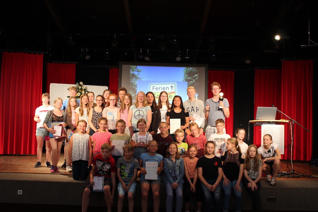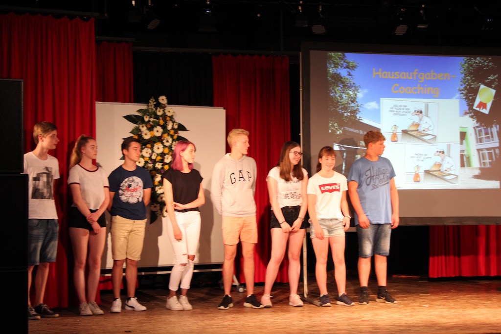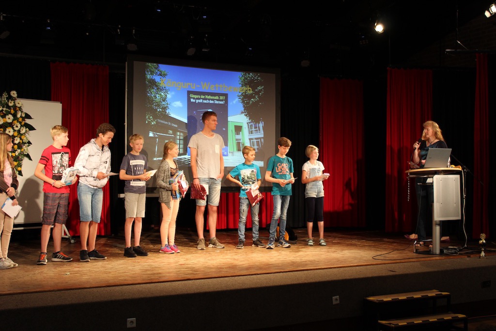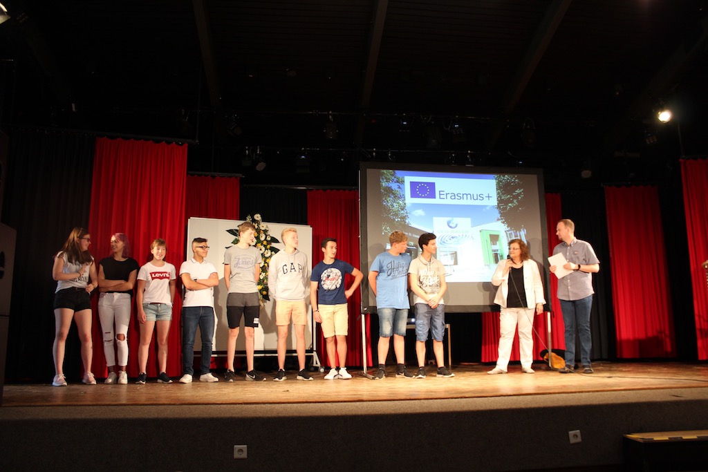 Neben der Verabschiedung von Herrn Krieger wurden die Schüler für die Teilnahme an verschiedenen Projekten belobigt. Z.B. für: Fremdsprachenwettbewerb Englisch, Erasmus+, DKMS-Aktion, Engagement der Theater AG, Hausaufgaben-Coaches, Sportfest, Jugend forscht, Mathe-Olympiade, Känguru-Schulpreis.