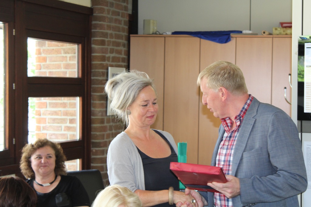 Frau Birgit Mosakowksi, die die letzen 6,5 Jahre das Fach Kunst am KGH entscheidend mitgeprägt hat, verabschiedete sich mit den entsprechenden guten Wünschen der Kolleginnen und Kollegen um nach den Ferien eine Stelle in Emden anzutretetn. Alles Gute!