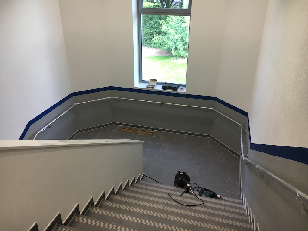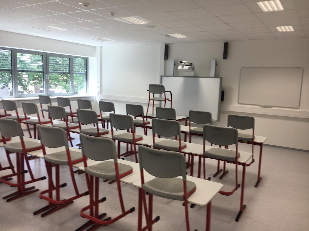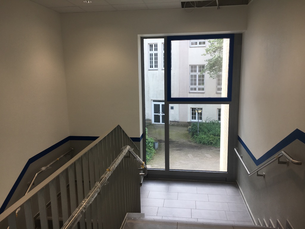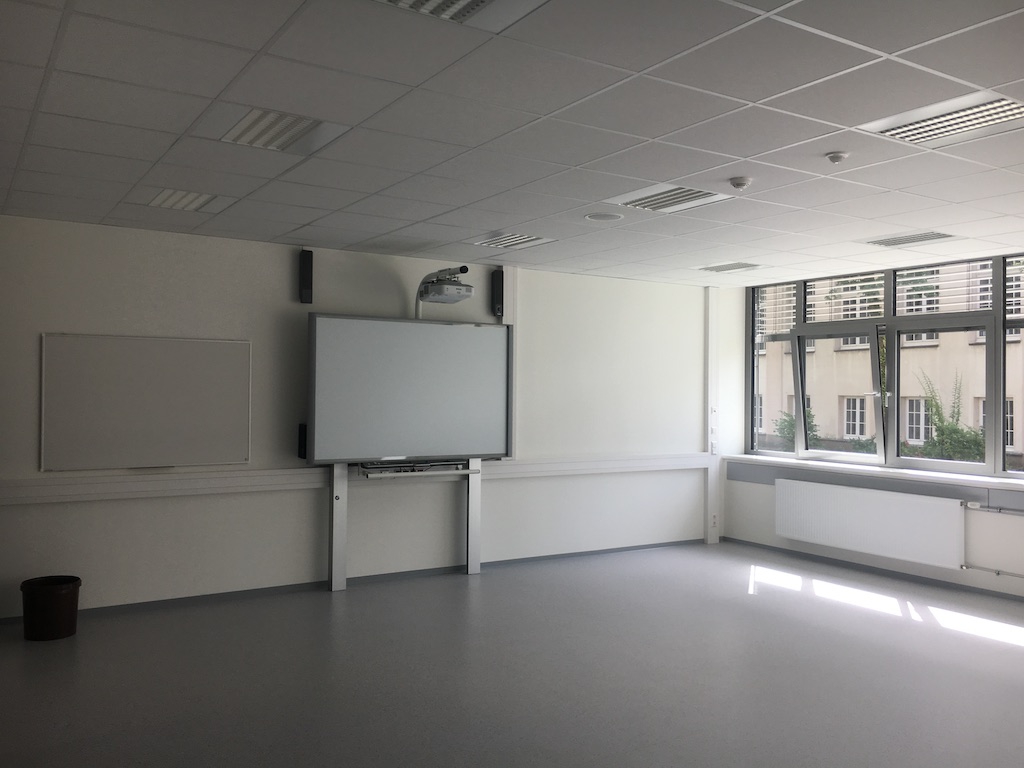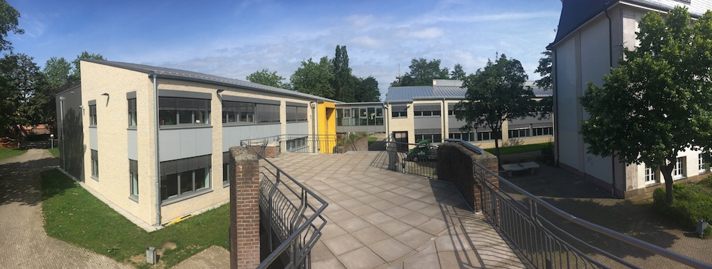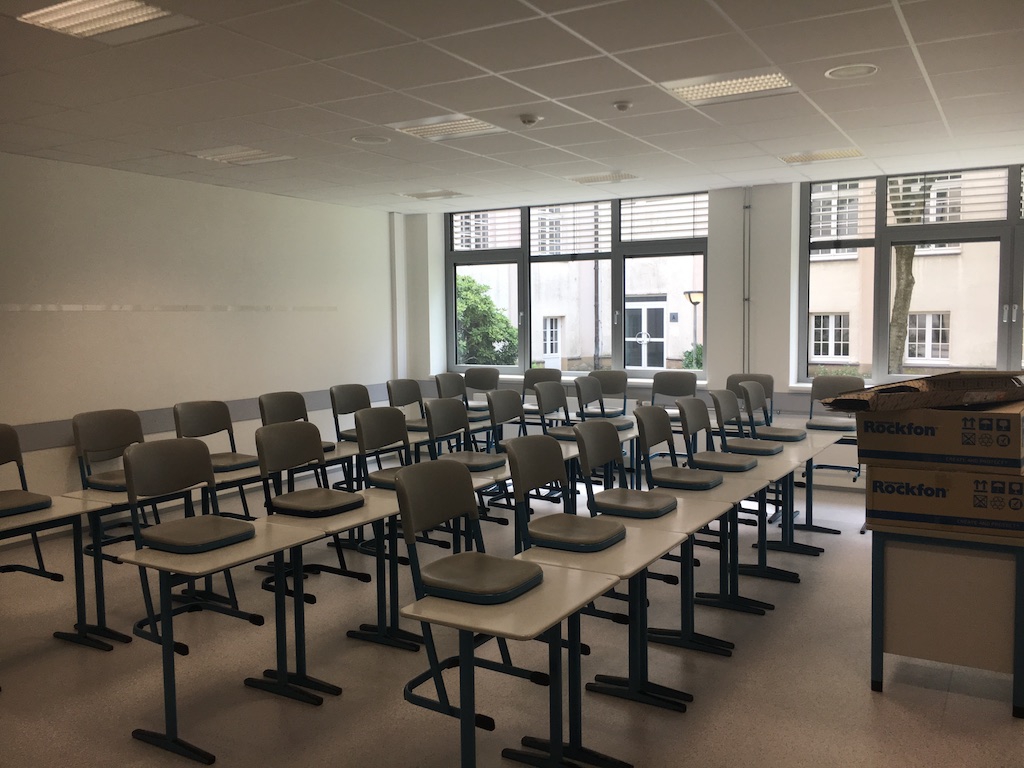 Die im letzten Sommer begonnenen großangelegten Renovierungs- und Umbaumaßnahmen am N-Gebäude sind abgeschlossen. So befinden sich im N-Gebäude nun 8 moderne Klassenräume. Hinzugekommen ist zudem ein neuer Übergang ins F-Gebäude, eine neuer Fahrstuhl und ein neues Treppenhaus. Alle Klassenräume sind mit Smartboards ausgestattet, so dass am ersten Schultag alle Räume voll ausgestattet zur Verfügung stehen werden.