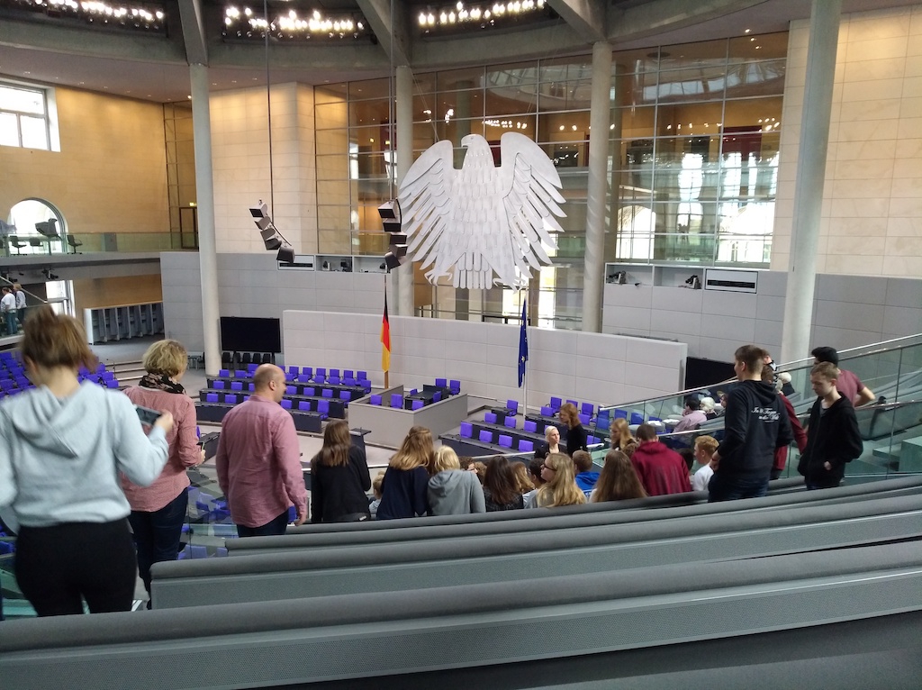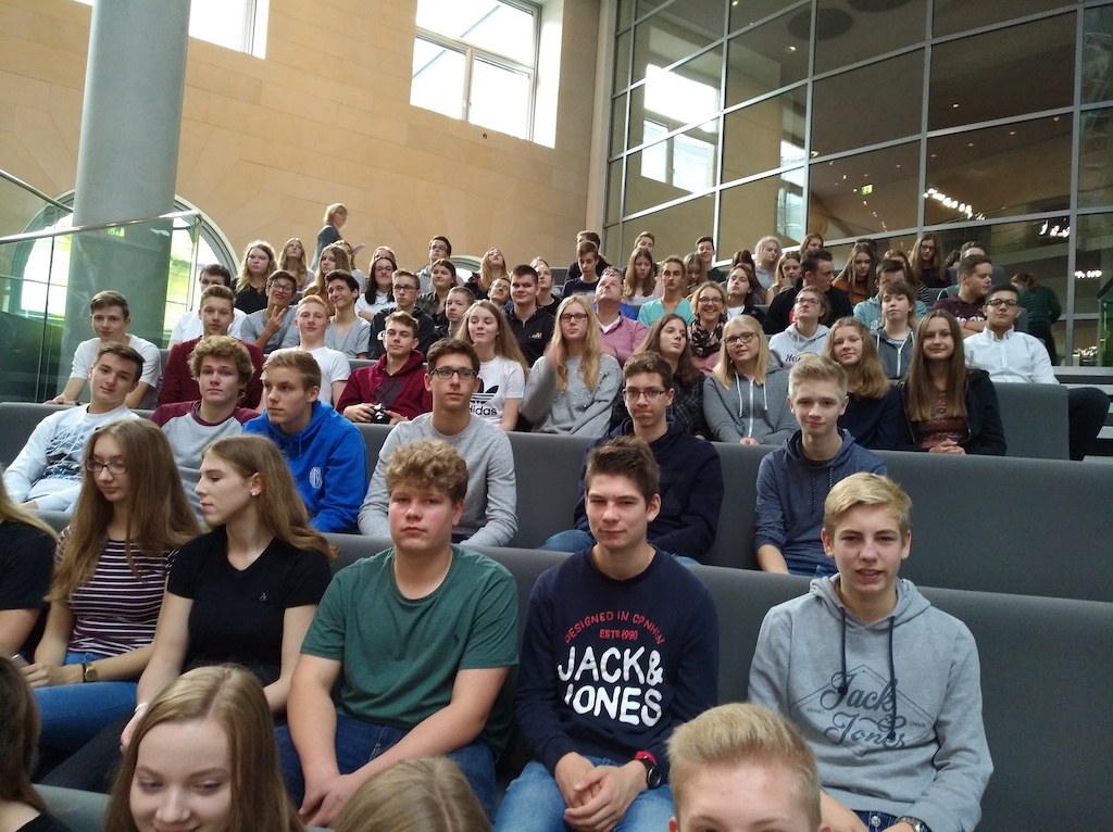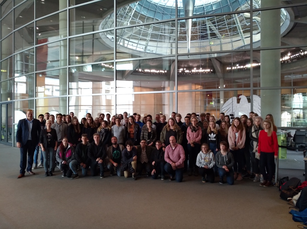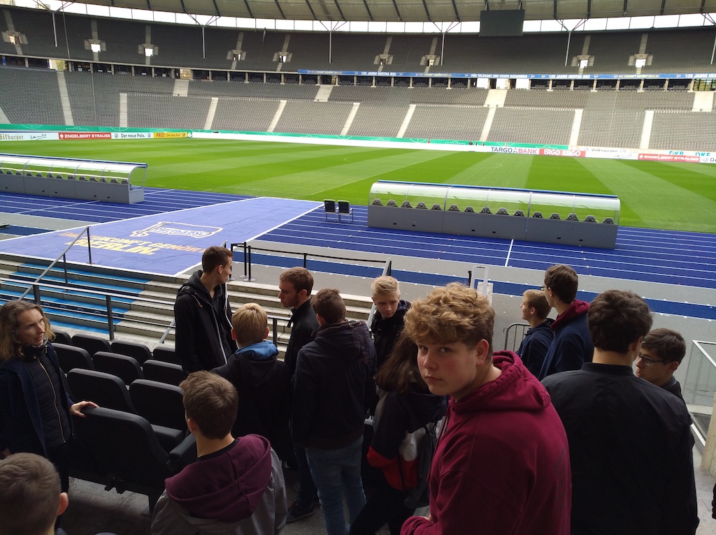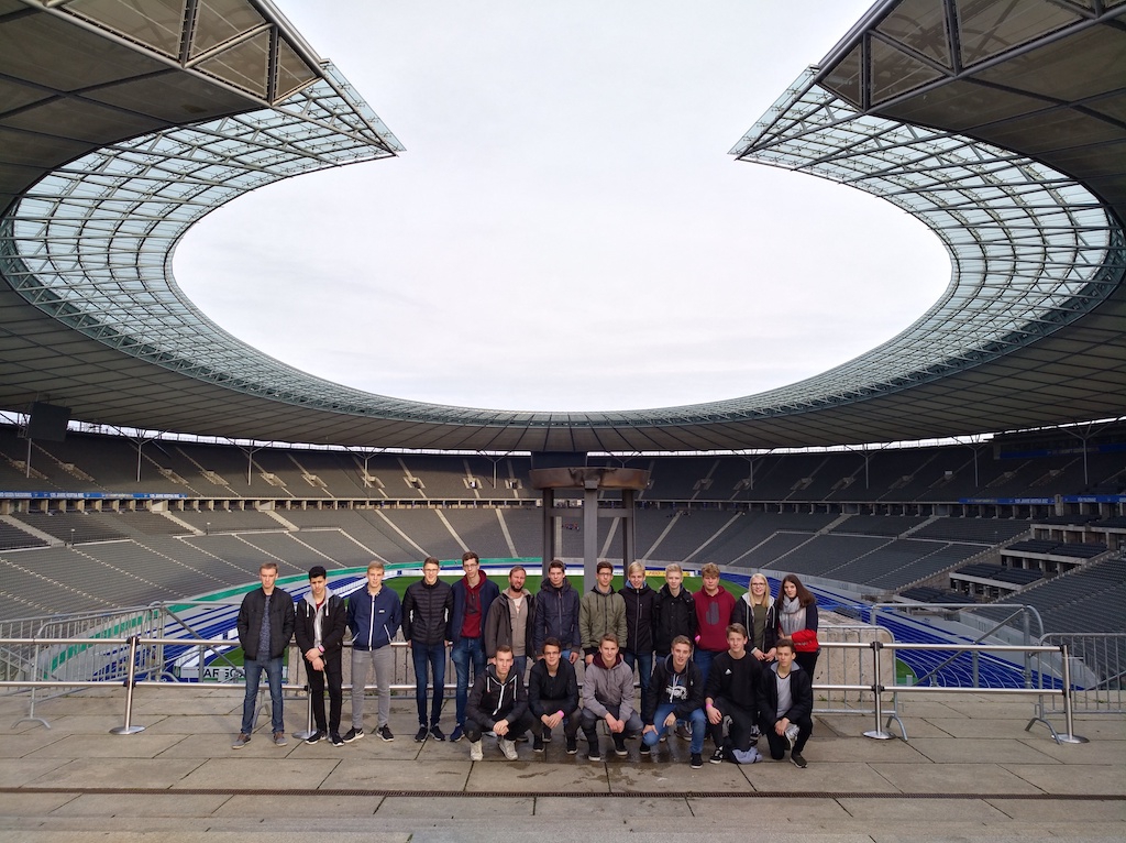 Vom 23. bis 27.Oktober war der Jahrgang 10 auf Klassenfahrt in Berlin, um mit ihren Lehrern Herrn Steinhake, Herrn Rühlmann und Frau Urbaniak, sowie den jeweiligen Vertretern Frau Flügel, Frau Wendt und Herrn Schnieders die Hauptstadt Deutschlands zu erkunden. Auf dem Programm standen u.a. eine interessante Stadtführung, der Reichstagsbesuch mit einer anschließenden Diskussionsrunde mit unserem Bundestagsabgeordneten Herrn Stegemann, die Erkundung der Museumsinsel sowie Joggen durch Berlins Mitte. An einem Modultag konnte zwischen einer Olympiastadiontour, einer Führung durch das ehemalige Stasigefängnis Hohenschönhausen und den Berliner Unterwelten gewählt werden. Das Highlight vieler Schüler war wohl das DFB-Pokalspiel zwischen Hertha Berlin und dem 1.FC Köln, welches am Mittwochabend stattfand. Diejenigen, die weniger dem Fußball verfallen waren, gingen gemeinsam bowlen. Am letzten Abend fand nach dem schaurigen Besuch im Berliner Dungeon eine Klassenaktivität statt, die aus Kino oder Lasertag bestand, um einen klasseninternen Abschluss der letzten Klassenfahrt zu bieten. Alle Beteiligten waren sich einig, dass die Berlinfahrt 2017 des 10. Jahrgangs ein absolut gelungenes und unvergessliches Erlebnis war.