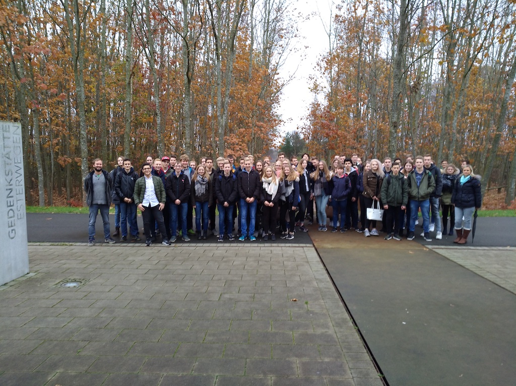 Am 16.11.2017 besuchte der Jahrgang 10 des Kreisgymnasiums St. Ursula gemeinsam mit den Geschichtslehrern Sabrina Otten und Robert Rühlmann die Gedenkstätte Esterwegen. Die Schüler und Lehrkräfte erhielten anhand eines Vortrages wichtige Eindrücke über Entstehung und Betrieb des ehemaligen Konzentrationslagers. Die Schüler bekamen weiterhin die Gelegenheit, vereinzelte Biografien ehemaliger Häftlinge zu recherchieren und waren besonders bewegt von den individuellen Schicksalen dieser Menschen. Diese zeichneten sich vor allem durch die grauenhaften Lebensumstände, wie der schweren Arbeit, dem Leben und dem unfassbaren Leid aus. Ferner erforschten die Schüler das Gelände des ehemaligen Konzentrations- und Gefangenenlagers und erfuhren, dass die Originalbauten der Jahre 1933-1945 nicht mehr existieren und das Gelände beinahe vollständig erneuert werden musste, um hier einen Ort des Erinnerns zu schaffen.