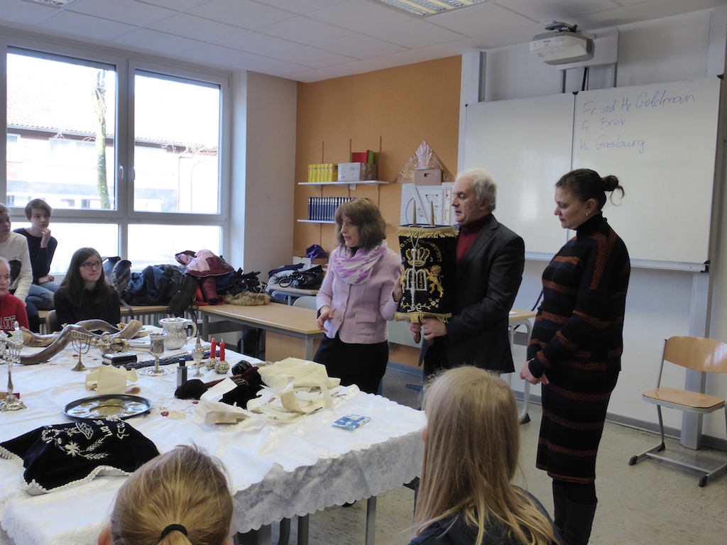 Inessa Goldmann, Alexander Ginsburg, Helena Brox und Aloys Lögering vom Verein für christlich-jüdische Zusammenarbeit führten zum bisher sechsten Mal das Projekt „Judentum begreifen“ an zwei Vormittagen mit den Schülerinnen und Schülern durch. Ermöglicht wird dieses Projekt vor allem auch durch die großzügige Unterstützung durch den Förderverein.