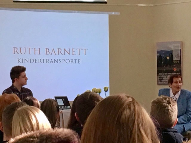 Vom 06.03.-08.03. ließ Ruth Barnett die Zuhörer in zwei Schulvorträgen und einer öffentlichen Veranstaltung in ihre Lebensgeschichte eintauchen und gab ihnen einen tiefen Einblick in das innere Erleben eines Kindertransport-Kindes.