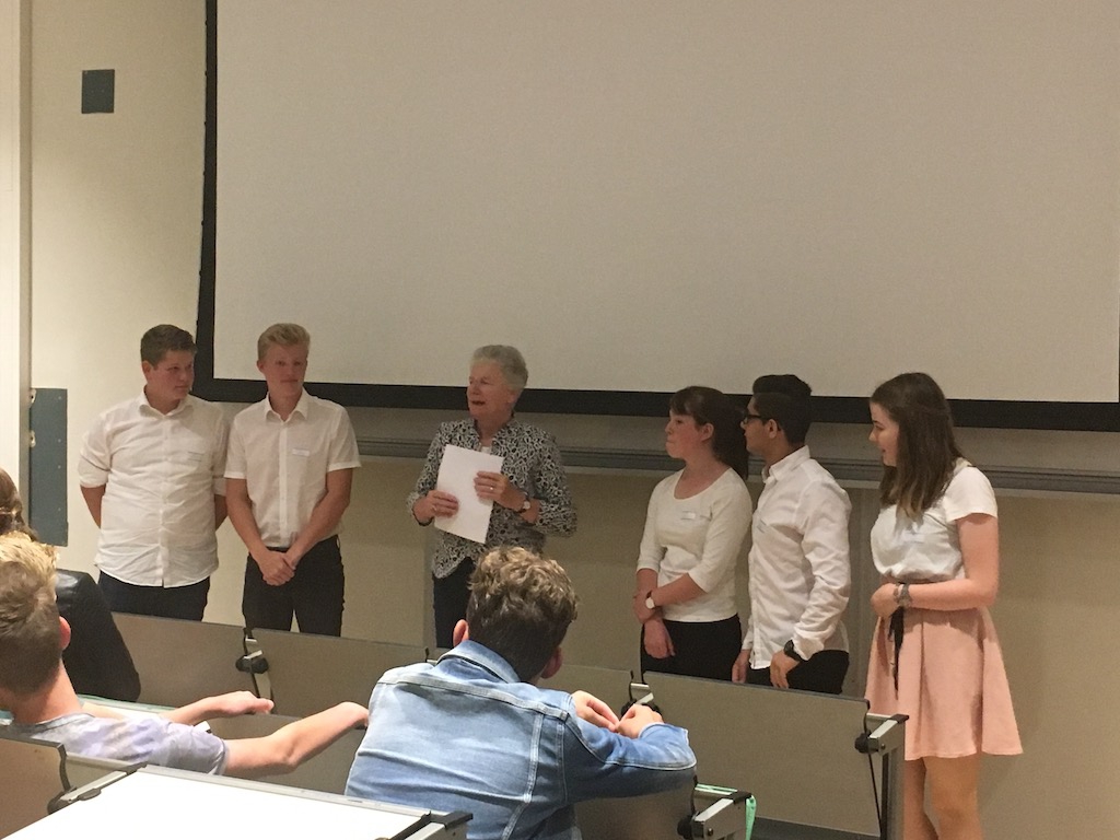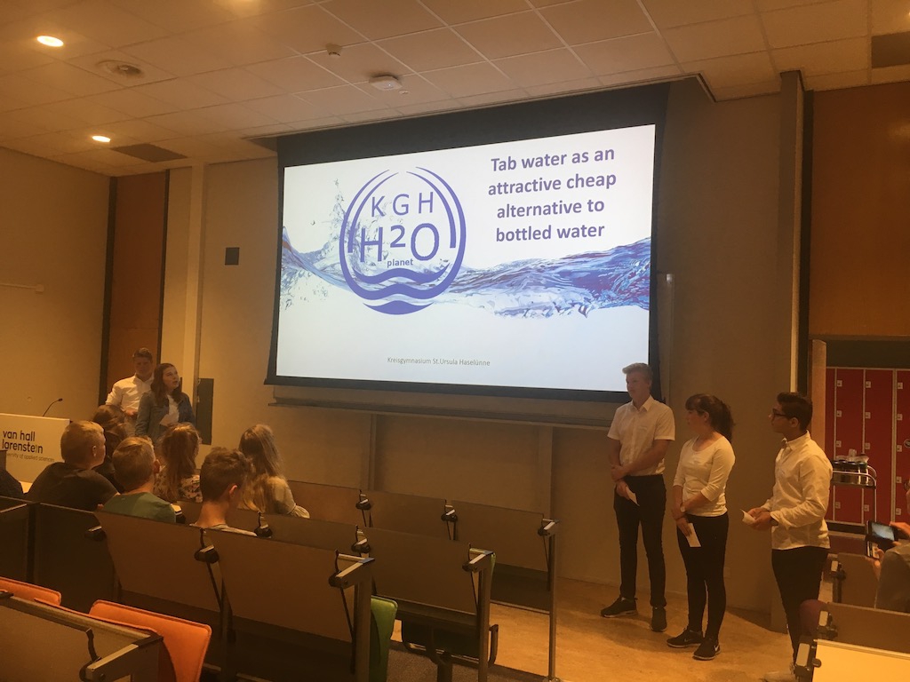 Gekrönt wurde die Woche durch die abschließende, bewertete Präsentation am letzten Tag. Hierbei erwies sich das Team des KGH (Franziska, Maxl, Jonathan, Fadi und Hannah), begleitet von ihren Lehrern Frau de Buhr, Frau Hilken und Herrn Schrant, als sehr souverän und die Juroren zeigten sich begeistert von den kreativen Projekten der Gruppe. Das Team erlangte so auch die begehrte Auszeichnung für die „Most Promising Idea“