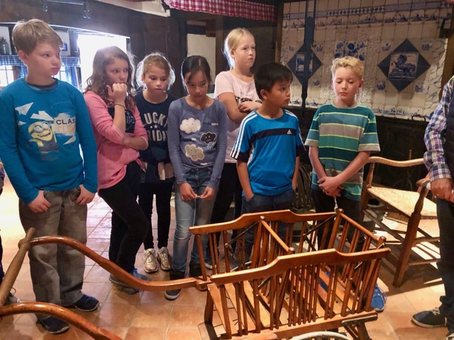 Im Haus Tiding wurde den Kindern gezeigt, wie u. a. Mensch und Tier unter einem Dach zusammenlebten. Dort bestaunten sie einen alten Kinderwagen und die Alkove.