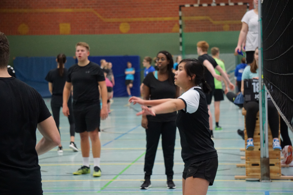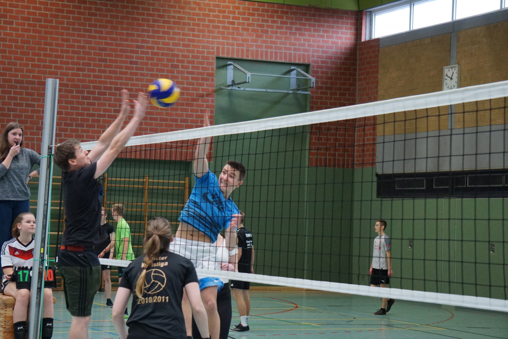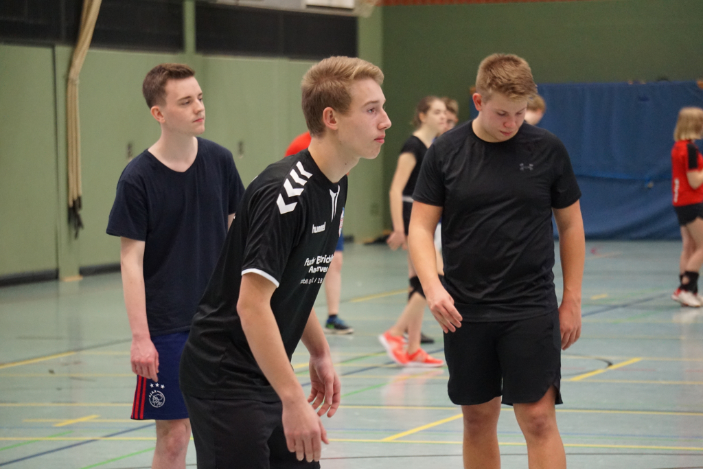 Nach einer spannenden Vorrunde, in der 12 Mannschaften um den Einzug in die Halbfinals kämpften, kristallisierten sich schnell zwei Favouriten aus dem Teilnehmerfeld heraus. Die Mannschaft „No-Name“ der Klasse 11c mit ihren Spielern Tim, Philipp, Jonathan, Timon, Franziska, Ina und Max setzte sich in der Vorrunde souverän mit vier Siegen und nur einer Niederlage durch und blieb auch im Halbfinale gegen ein Team des 12. Jahrgangs siegreich.
