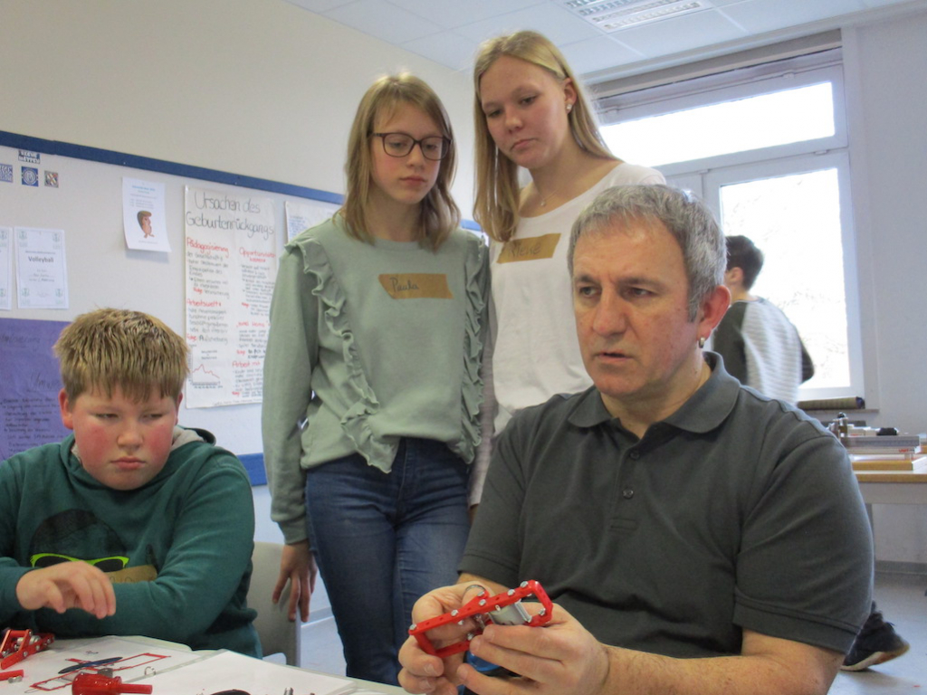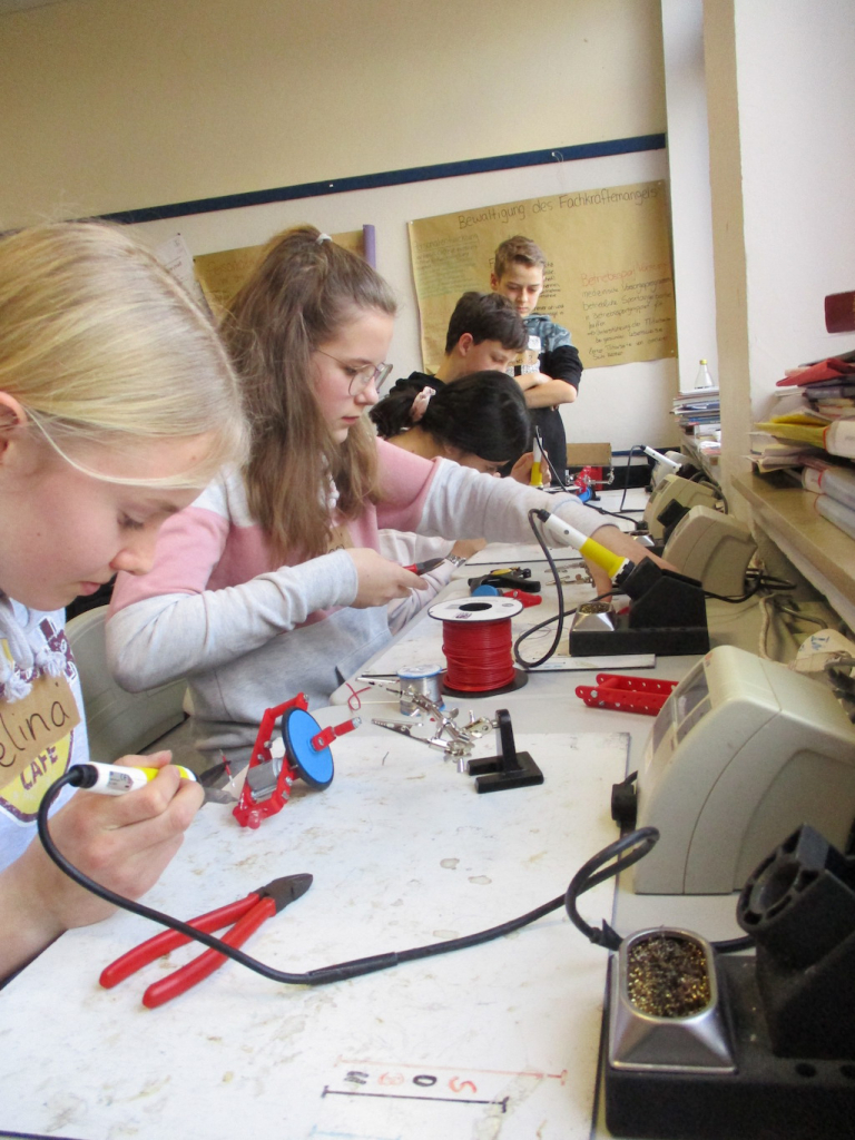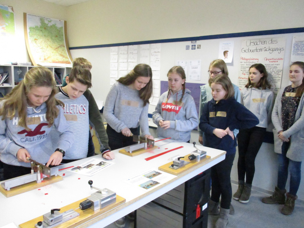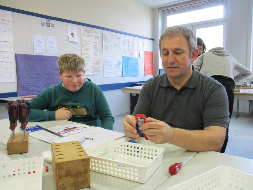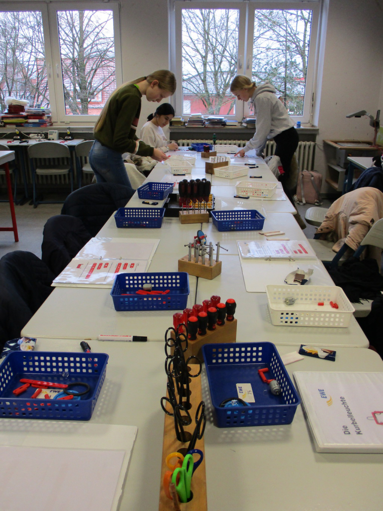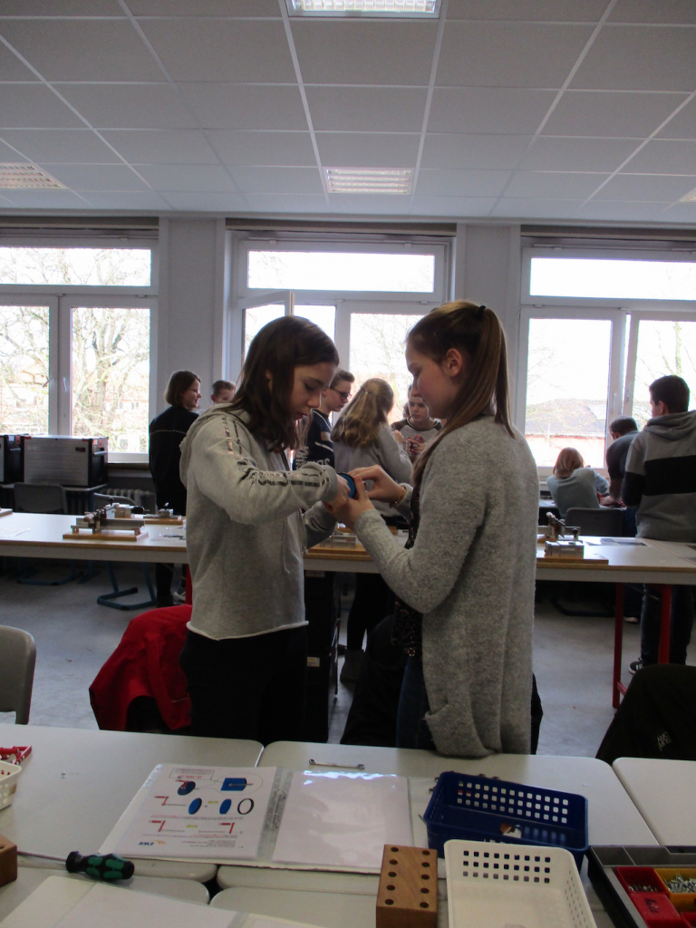 In der Werkstatt des EWE-Mobils ging es für die Klasse 8b (am 29.2.19) zum Beispiel um das spannende Thema Energiewandlung. So bauten die SuS hier unter Anleitung ein Modell und testeten die Funktionsweise in den mobilen EWE-Werkstätten.