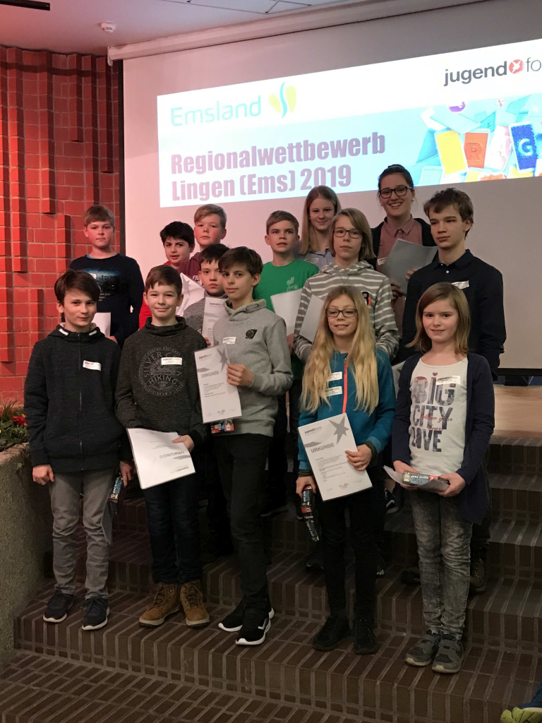 Franziska Leigers und Nora Jeftenic erreichten beim Regionalwettbewerb „Jugend forscht – Schüler experimentieren“ in Lingen einen 2. Platz in der Kategorie Arbeitswelt und den Sonderpreis „Umwelttechnik“.Bereits nach den Sommerferien begann das Forschen und Experimentieren zum Thema „Einfach gesund essen„. Franziska und Nora (beide Jahrgang 8) machten sich Gedanken über ihre Ernährung und was in Lebensmitteln so alles drin steckt. Sie wollten eine Alternative zu Fertigprodukten schaffen und stellten deshalb ihre eigenen Lebensmittel her. Da Geschmäcker bekanntlich verschieden sind, durften auch einige Mitschüler an ihren „Rezeptexperimenten“ teilhaben. Nora und Franziska wollten von ihnen wissen, wie gut die Alternativen schmecken. Mit ihren Rezepten und ihrer Erforschung der Fertigprodukte überzeugten sie auch die Jury.