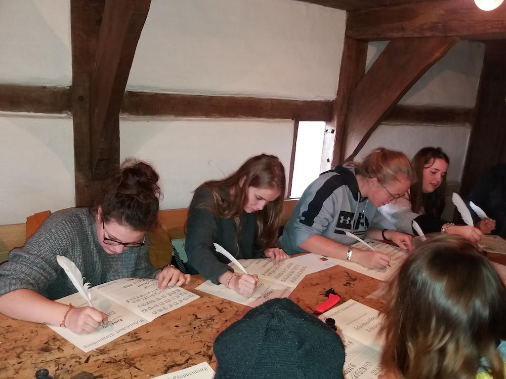 So besuchten Gäste und Gastgeber Bremen. Weitere Exkursionen führten sie u.a. zu einem Schreibmeisterlehrgang ins Museumsdorf Cloppenburg (gotische Schrift mit Gänsekiel) und es fand auch ein offizieller Empfang im Rathaus statt. Natürlich stand auch der traditionelle dt.-frz. Abend wieder mit auf dem Programm.