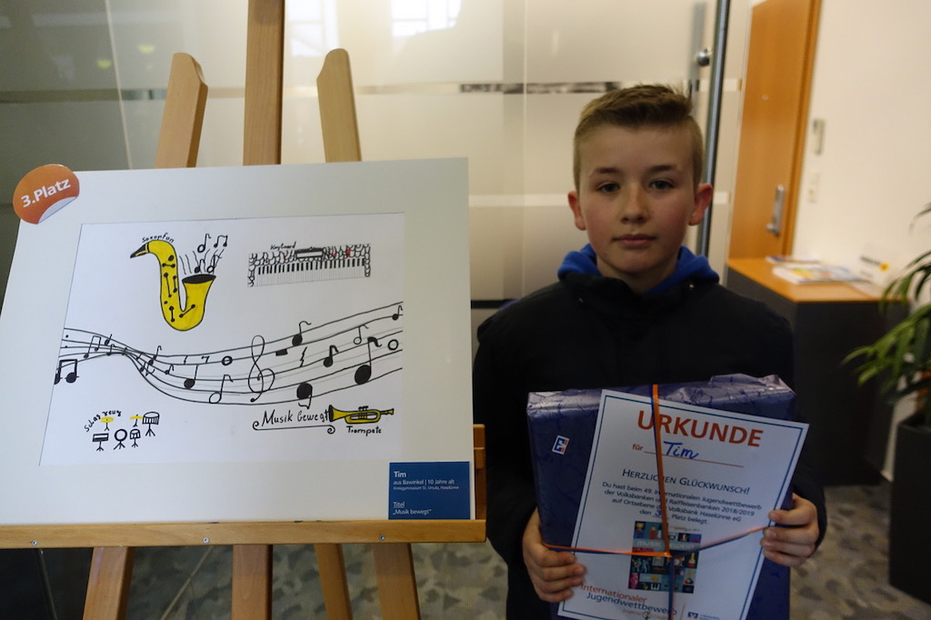 In der Altersgruppe der Jahrgangsstufe 5 und 6 siegten die Schülerinnen Mia Wilmink (Platz 1) und Linda Schulte (Platz 2) und der Schüler Tim Niehoff (Platz 3) im Rahmen des diesjährigen internationalen Kunstwettbewerbs „jugend creativ“ der Volksbank.