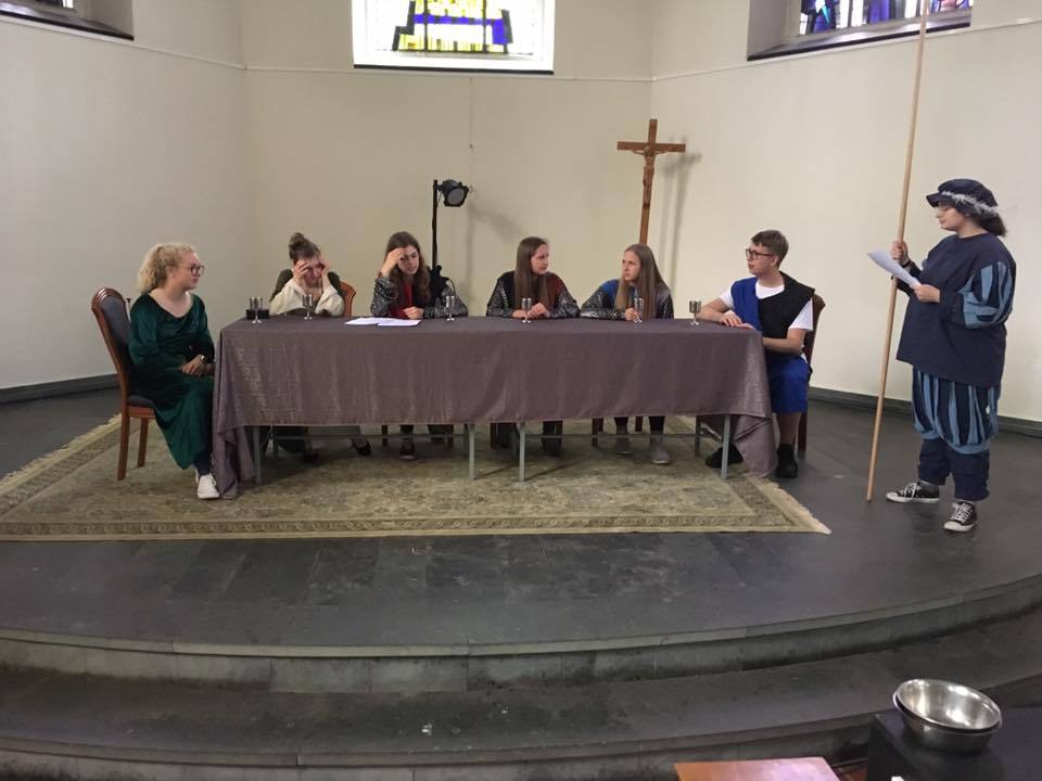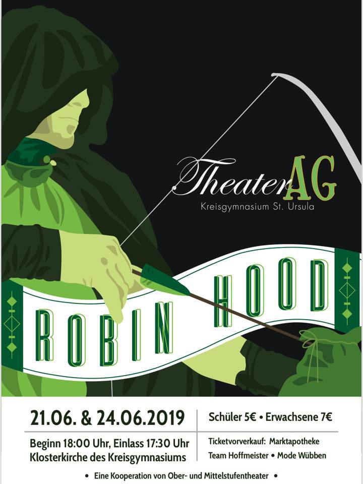 Die Oberstufentheater-AG mit Herrn Seidel und die Mittelstufentheater-AG mit Frau Jongebloed proben mehrmals in der Woche und an den Wochenenden für die baldige Premiere des „Robin Hood“ in der Klosterkirche des Kreisgymnasiums am 21.6. (2. Aufführung 24.6.).