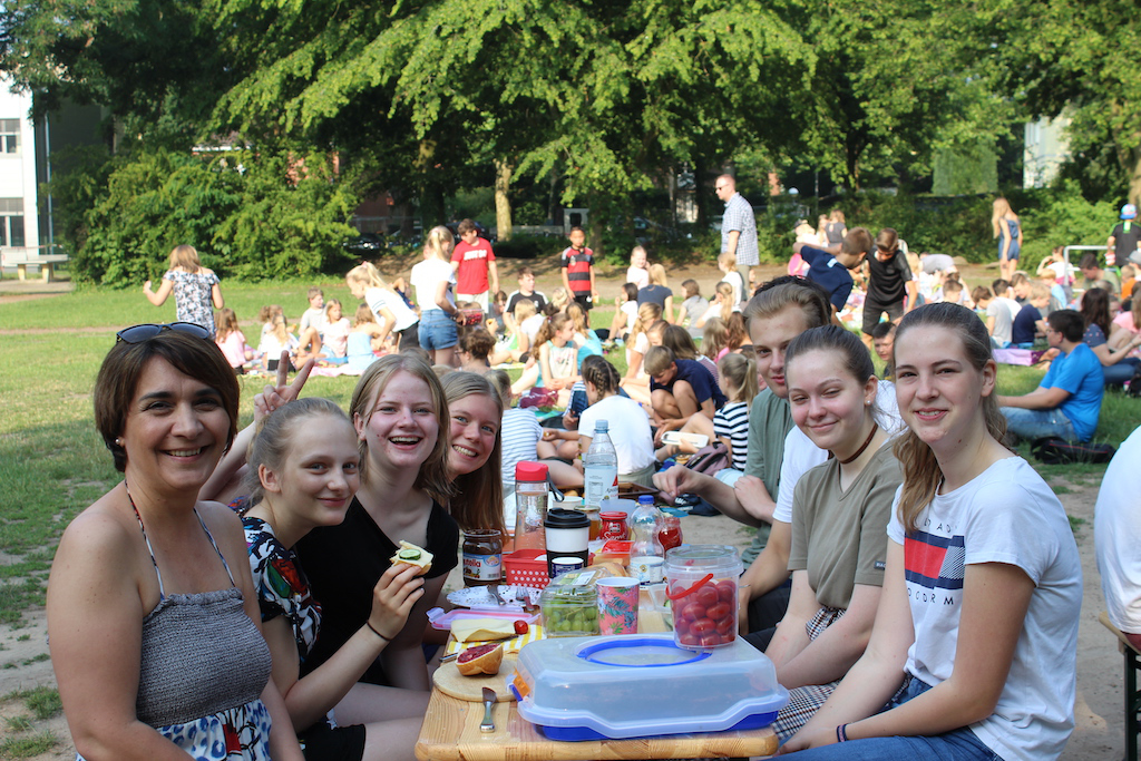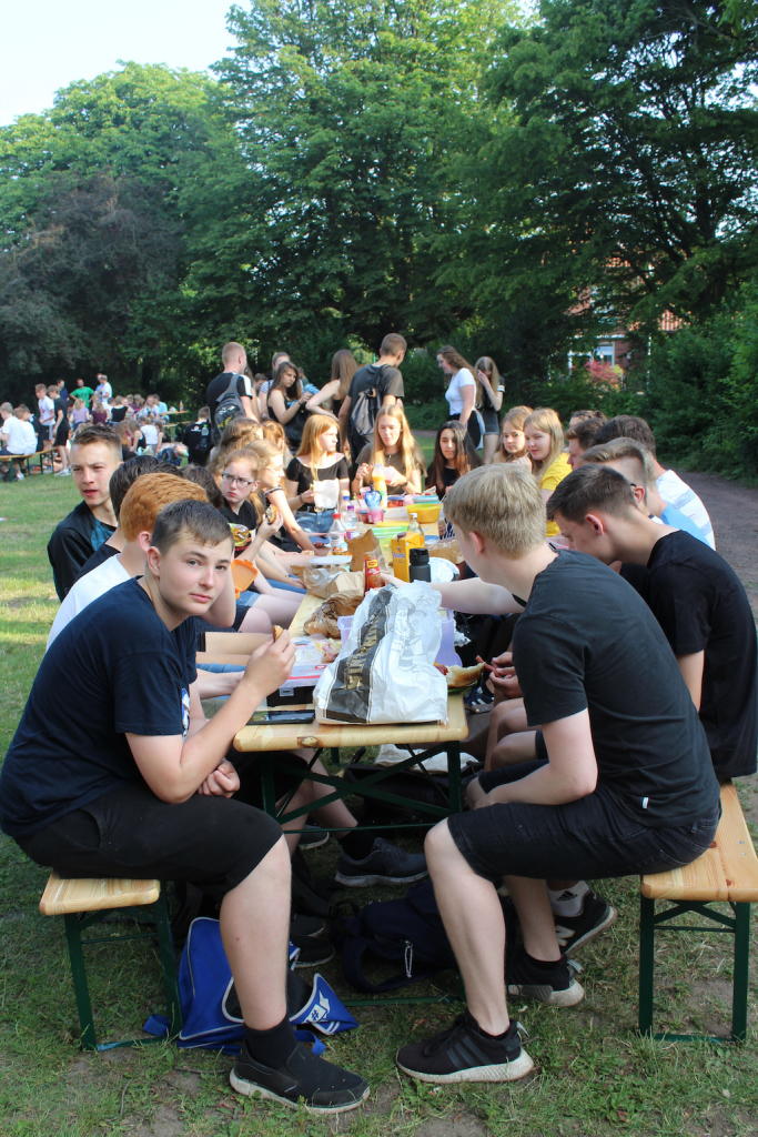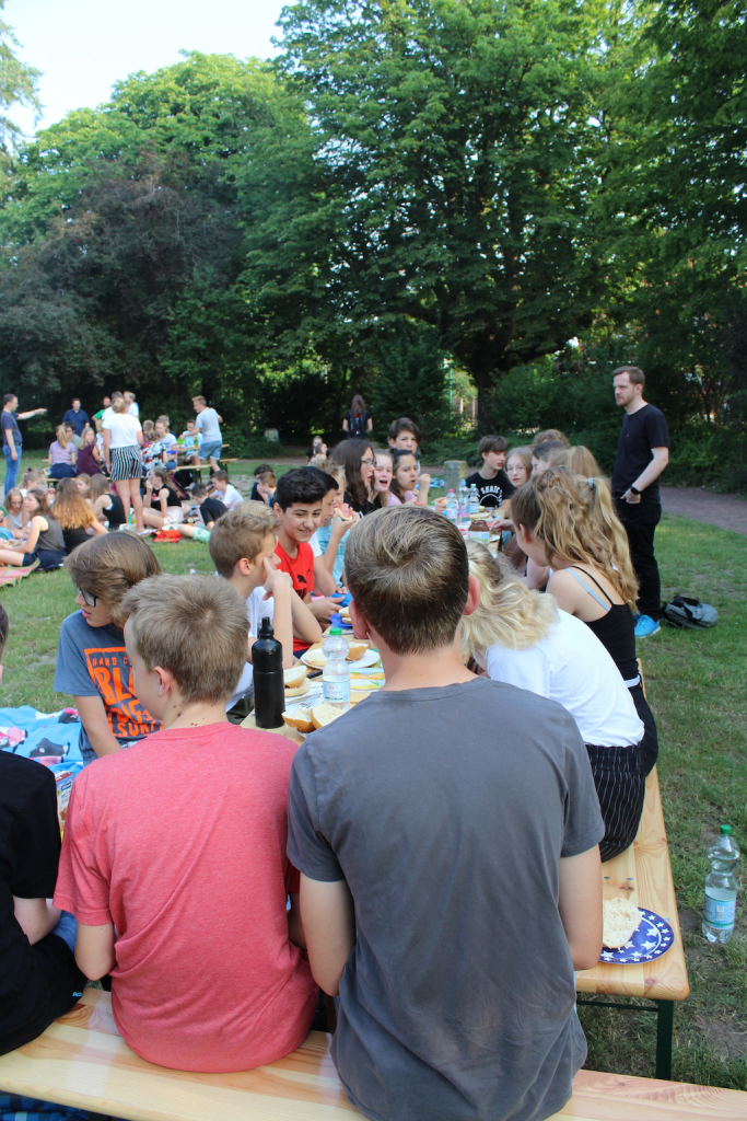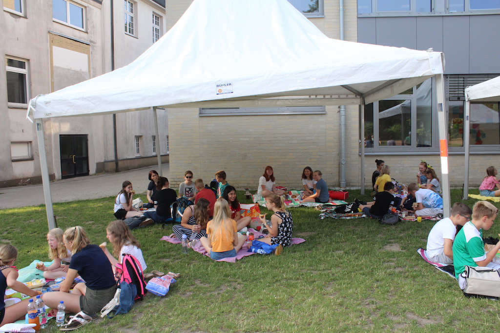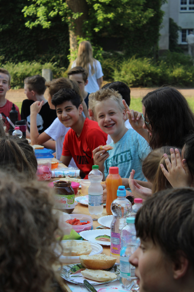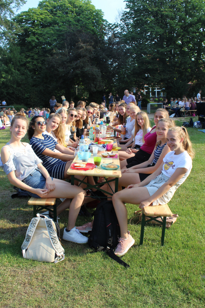Bei strahlendem Sonnenschein genossen die Klassen eine Doppelstunde lang die von ihnen mitgebrachten Speisen, unterhielten sich, spielten und ließen auch an einem Schultag mal einige Zeit lang die Seele baumeln.