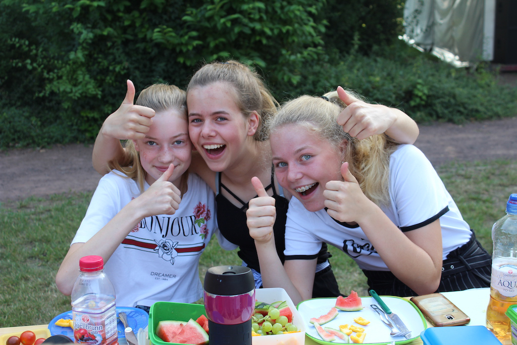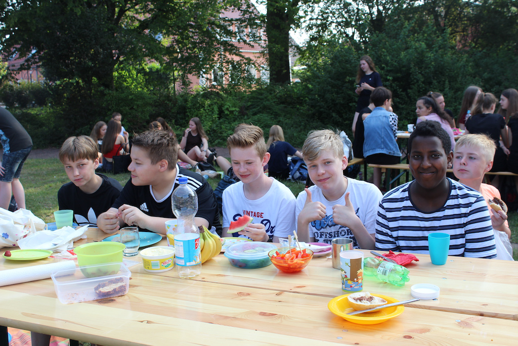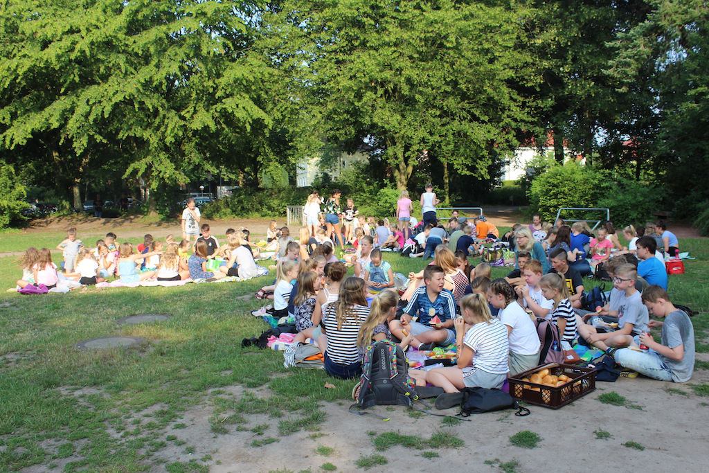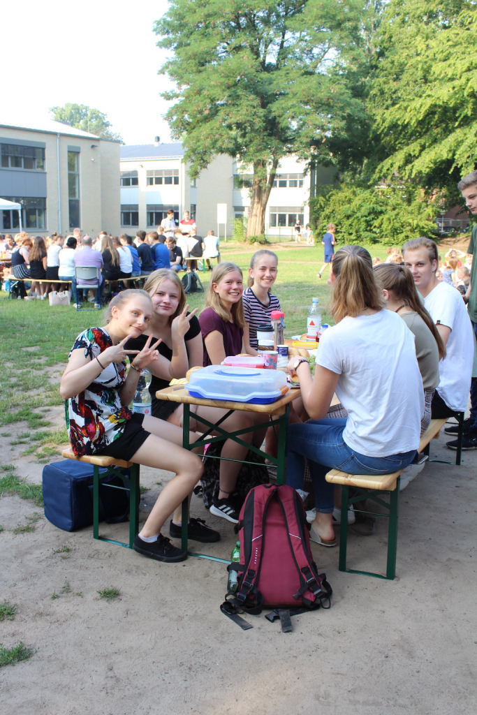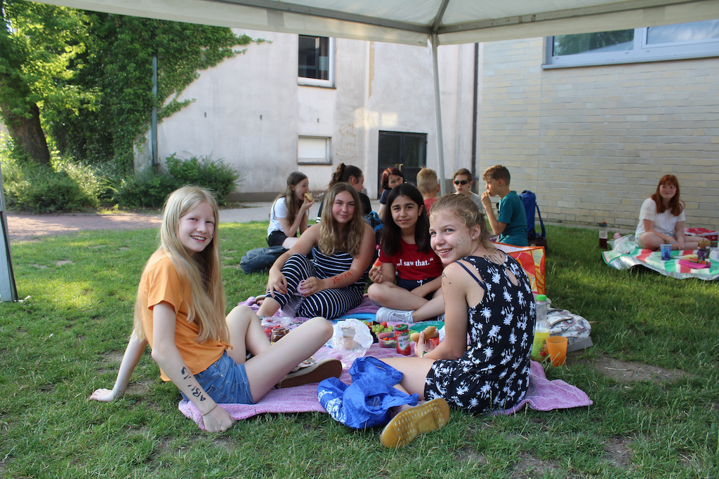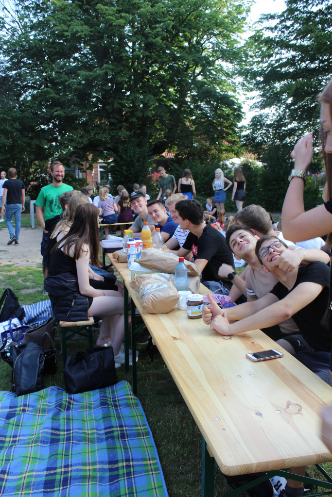 Bei strahlendem Sonnenschein genossen die Klassen eine Doppelstunde lang die von ihnen mitgebrachten Speisen, unterhielten sich, spielten und ließen auch an einem Schultag mal einige Zeit lang die Seele baumeln.