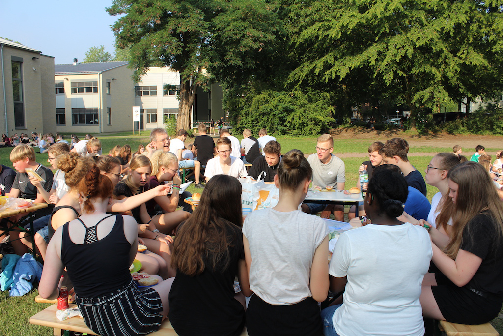 In diesem Jahr begann der Tag allerdings nicht mit einer Übernahme des Unterrichts durch die Abiturenten, sondern mit einem Frühstück aller Schülerinnen und Schüler auf dem Schulhof an der Kolpingstraße.