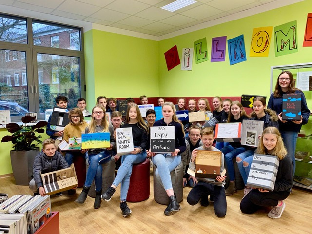Die Schülerinnen und Schüler der Klasse 8b bekamen von ihrer Deutschlehrerin Natascha Jongebloed die Aufgabe, sich aus der neu eröffneten Bibliothek (LIZ) ein Buch auszuleihen und dieses im Unterricht vorzustellen.