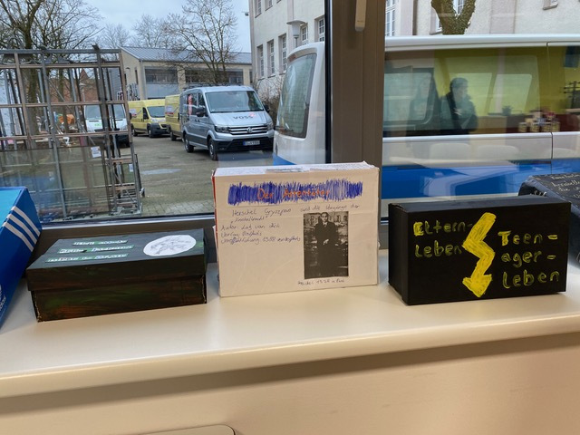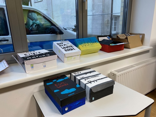 Statt einer klassischen Buchpräsentation sollte das Werk in Form einer Lesekiste dargeboten werden. Dazu benötigt man einen Schuhkarton, der passend zum Buch gestaltet wird.
