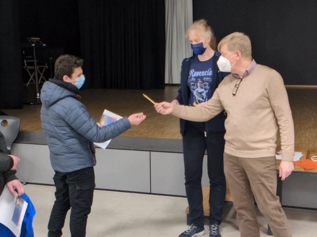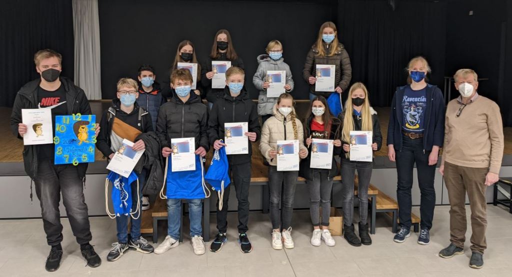 Dieses Jahr haben 7 Schülerinnen und Schüler einen 1. Preis erreicht: Enrik Bröker, Rahel Dreischulte, Jannes Haneklaus, Lars Hoffschröer, Laurenz Purk, Konrad Weßling und Mika Willen. Als kleinen Sonderpreis erhielten sie einen bedruckten Stoffbeutel aus Holz.