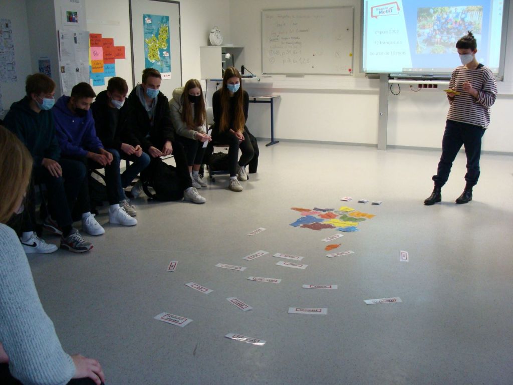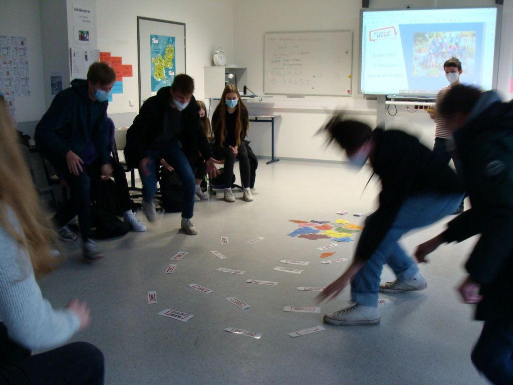 Rapsong und Quiz zu französischer Kultur und Landeskunde – Städte sollten auf einer Frankreichkarte richtig platziert werden – brachten Bewegung und Spaß in die „Unterrichtsstunde“. Ganz nebenbei konnten die Schüler außerdem feststellen, dass sie auch eine Muttersprachlerin schon problemlos verstehen können.
