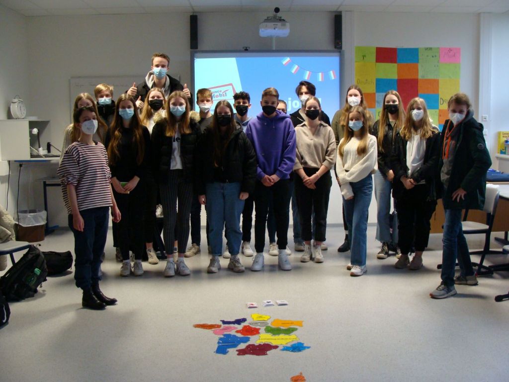 Mit Spiel und Spaß das Erlernen der französischen Sprache fördern und die Kultur des Nachbarlandes vorstellen, das ist das Ziel von FranceMobil des Institut français in Bremen – und das nicht nur als Entscheidungshilfe bei der Wahl der 2. Fremdsprache sondern auch als Motivationsschub für die Oberstufe. Die Lektorin Sascha Leclercq ließ die Schülerinnen und Schüler Frankreich interaktiv entdecken.