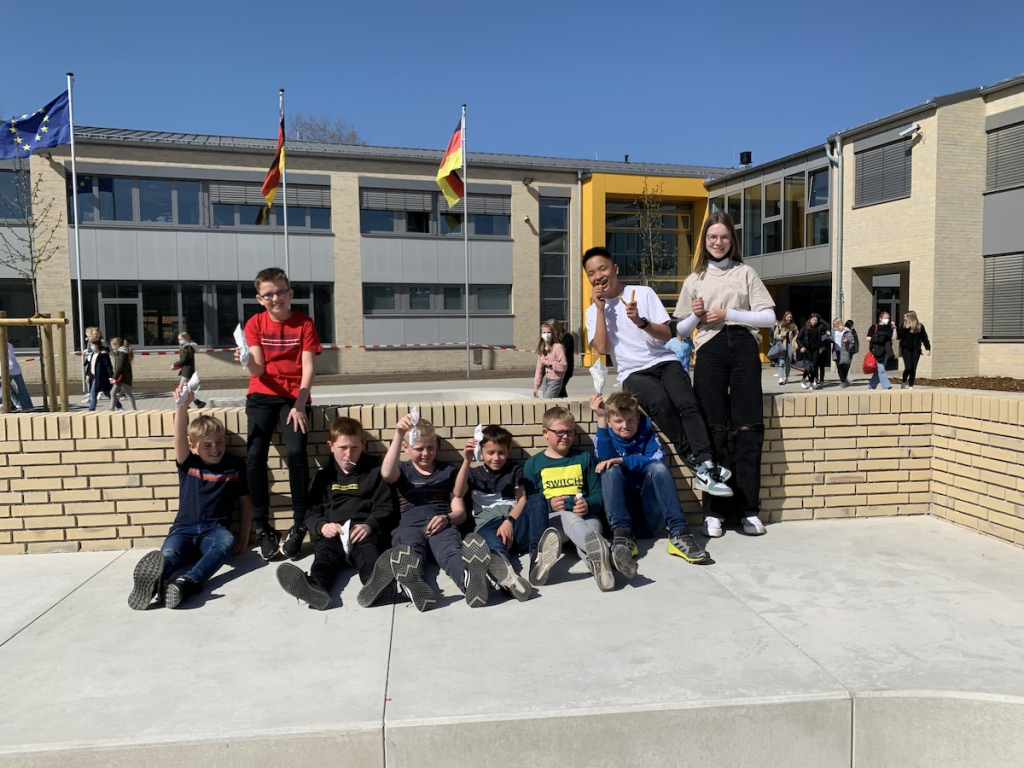 Am Mittwoch dem 20.04.2022 wurde die Osteraktion an unserer Schule durchgeführt. Es funktioniert so, die Schülervertretung unserer Schule hat 180 Tüten mit Süßigkeiten gepackt und versteckt. Der 5. und 6. Jahrgang durfte nacheinander suchen und die Tüten mit Süßigkeiten anschließend vernaschen.
