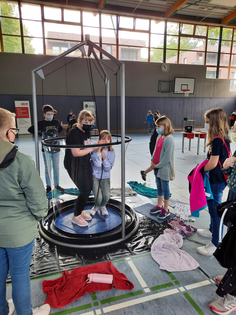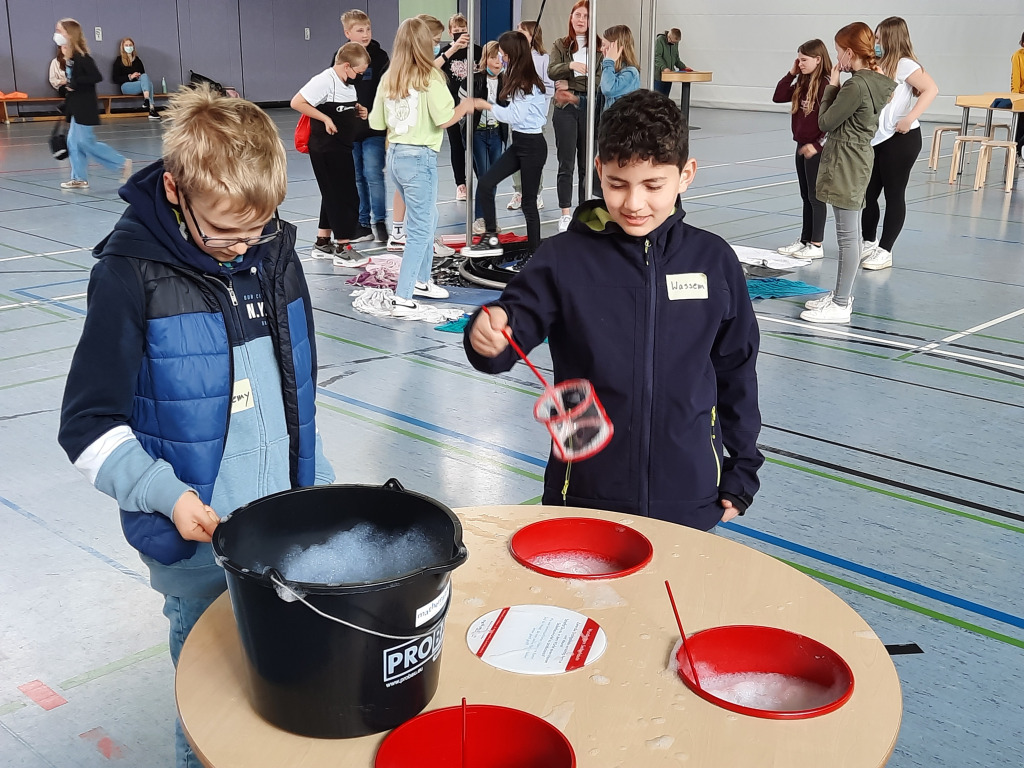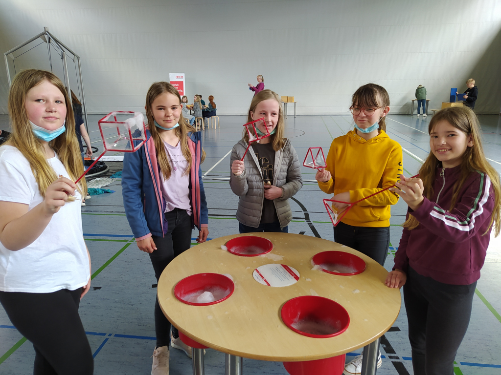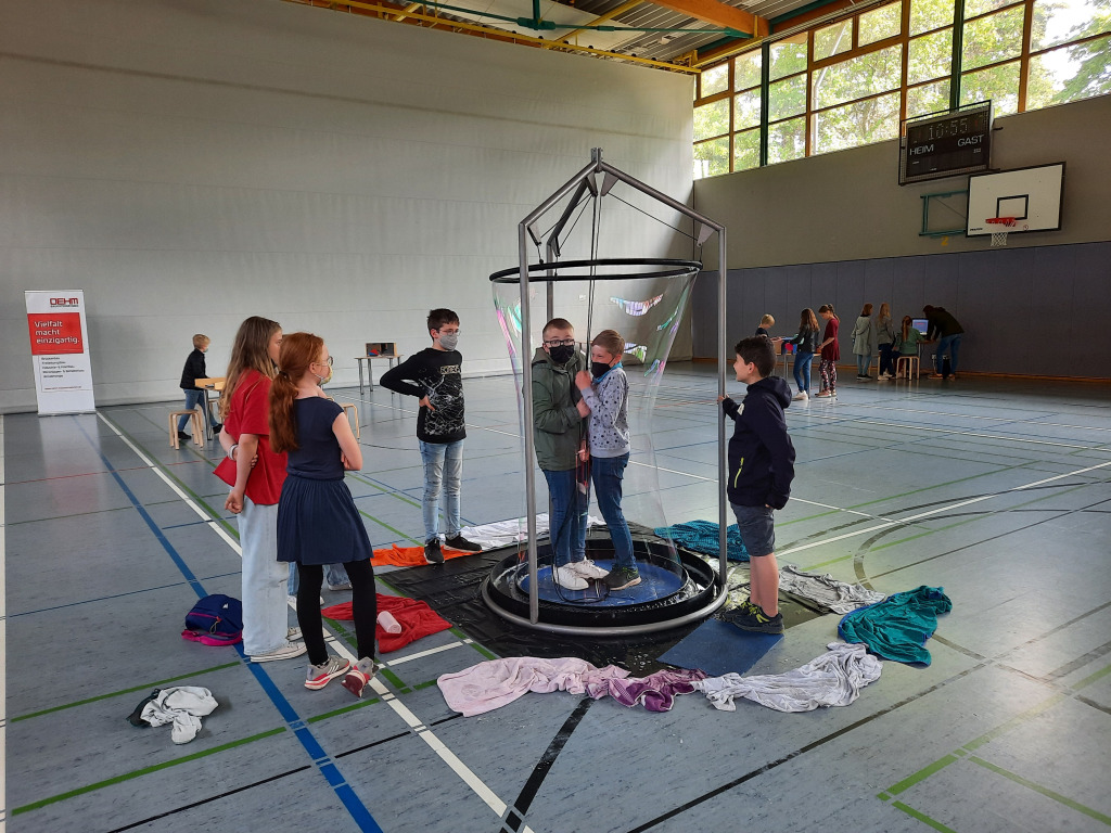 Die absoluten Highlights vieler Schüler und Schülerinnen waren es, eine Riesenseifenblase um sich selbst herum zu erzeugen sowie eine Station, bei der man eine Funktion selbst „erlaufen“ musste.