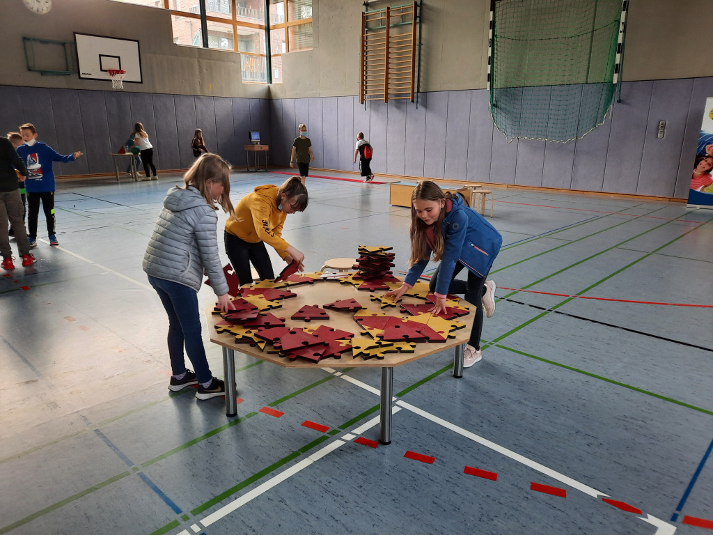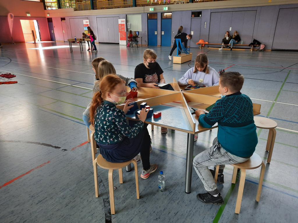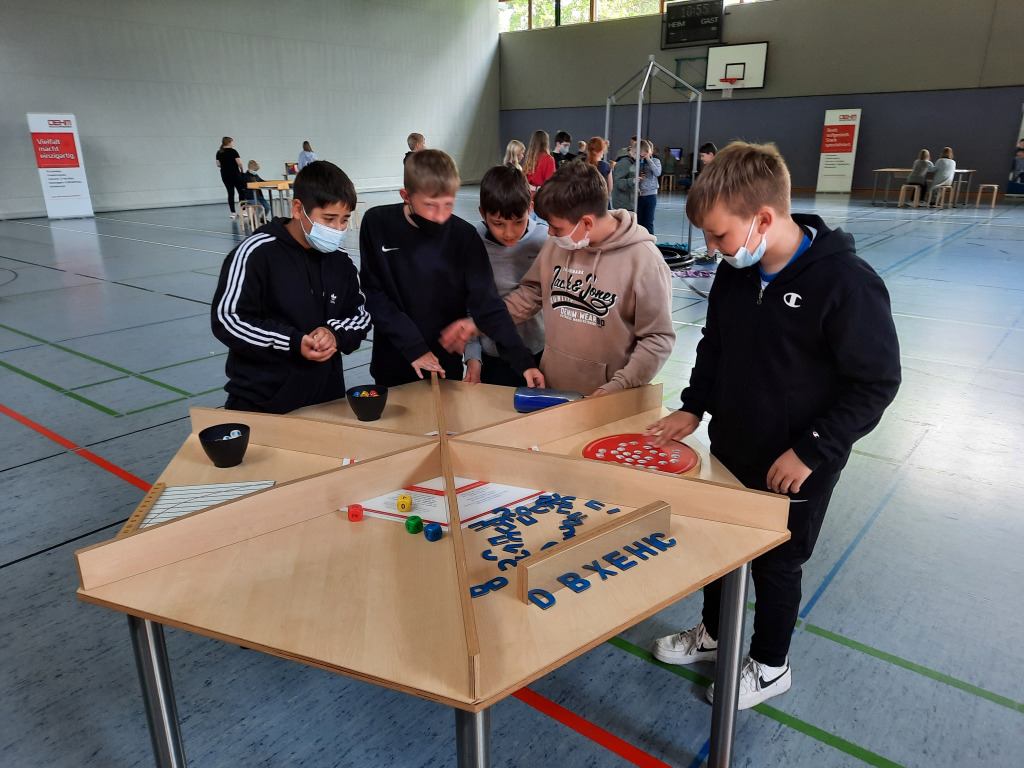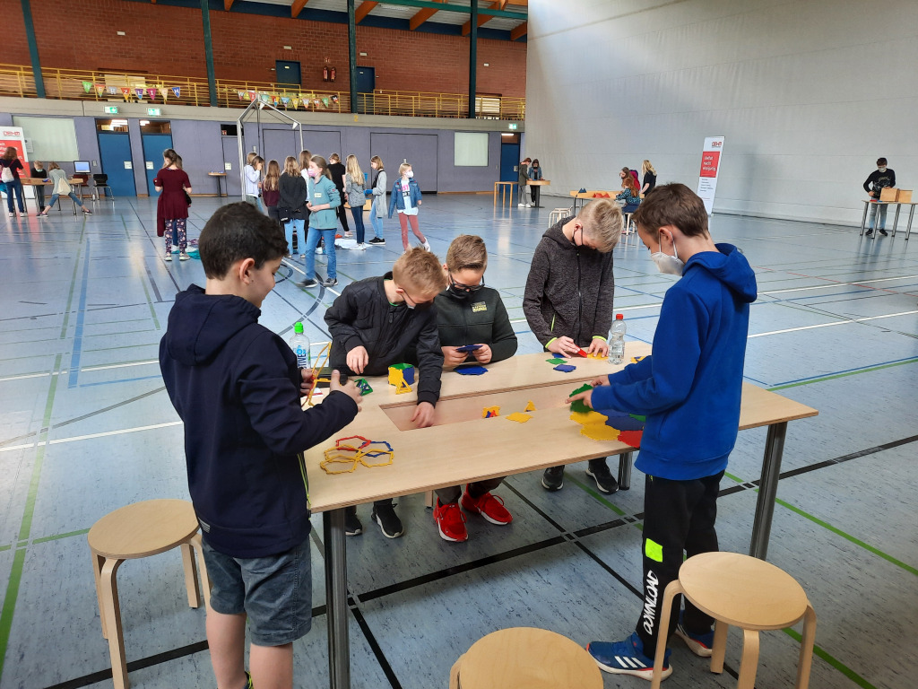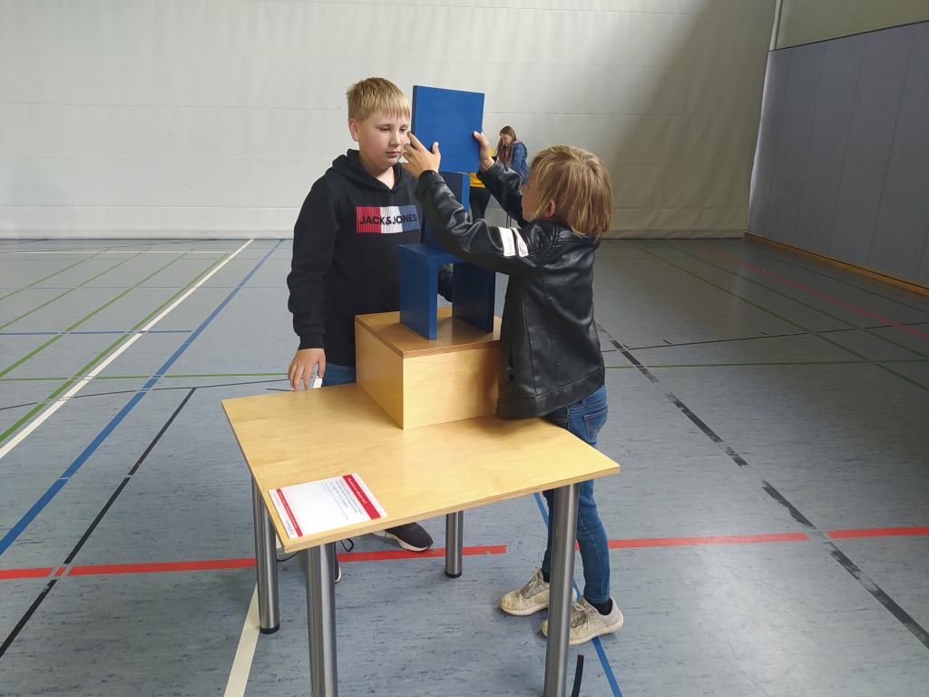 Dass Mathe sehr wohl spannend ist und Spaß machen kann, haben unsere Fünftklässler Mitte Mai bei einem Besuch der Wanderausstellung „Mathematik zum Anfassen“ des Mathematikum Gießens erleben können.