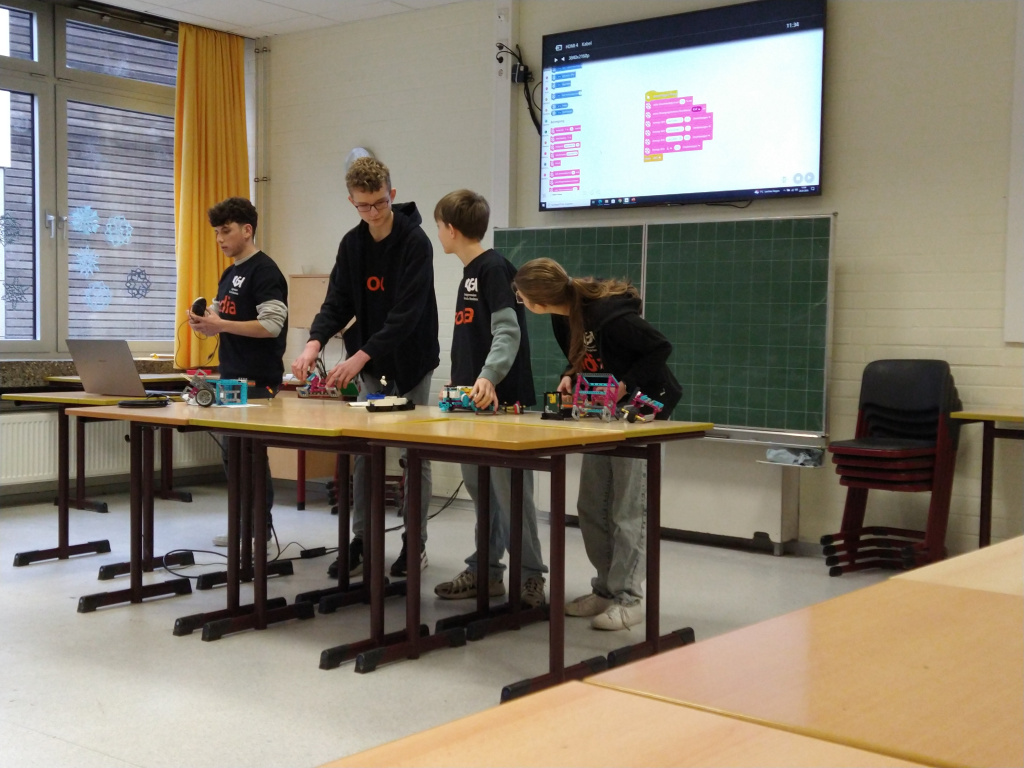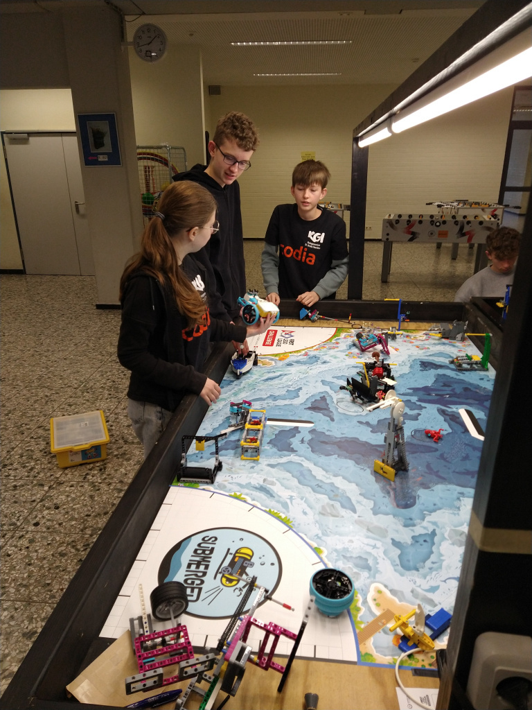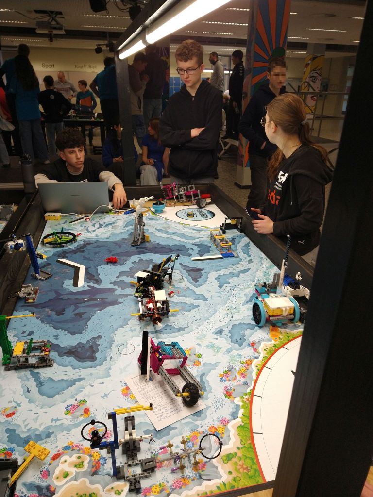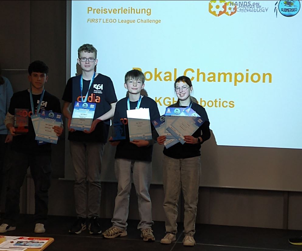 Am 25.01.2025 fand der Regionalwettbewerb in Osnabrück am Gymnasium Carolinum statt. Bereits um 9 Uhr traf das Team bestehend aus Jonne Schulte (Jg. 7), Pelle Schulte (JG 9) Amira Zuchgan (JG 10) und Gregori Bojkovski (JG 11) am Wettbewerbsort ein. Sie wurden von ihrem Coach Stephan Armbrust begleitet. Der Wettbewerb startete direkt nach den Sommerferien und es wurde nicht nur während der AG-Zeiten getüftelt, sondern auch an diversen Wochenenden und in den Herbst- und Weihnachtsferien. Das Team wollte unbedingt eine Runde weiterkommen. Bei der Preisverleihung konnten die Schüler aus Haselünne durchweg überzeugen. Mit dem 1. Platz in der Kategorie Robot Game erhielten sie einen Pokal, im Robot-Design, Forschungspräsentation und Grundwerte wurden sie ebenfalls für die ersten vier Plätze nominiert. Somit war auch der Gesamtsieg inklusive Champion-Pokal ihrer. Die beiden besten Teams vom Regionalwettbewerb Osnabrück werden am 23.02.25 beim Qualifikationswettbewerb in Aachen antreten. Dort treffen sie dann auf die Gewinnerteams anderer Regionalwettbewerbe. Auch hier drückt das KSU die Daumen