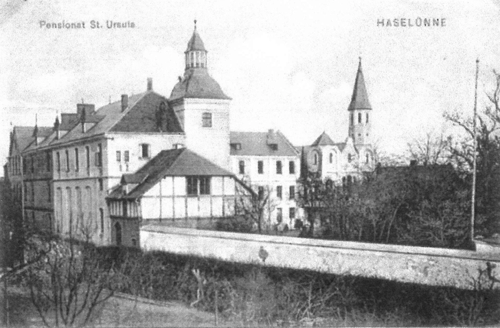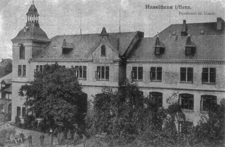 Im Jahre 1972 wurde das damalige von den Ursulinenschwestern geleitete Gymnasium, das bis 1968 ein Mädchengymnasium gewesen war, vom Landkreis Meppen (heute ein Teil des Landkreises Emsland) übernommen. Mit Beginn des Schuljahres 1972/73 wurde aus der katholischen Ursulaschule das öffentliche Kreisgymnasium St. Ursula. Zunächst unterrichteten viele Ursulinen weiterhin an ihrer alten Schule. So war ein nahtloser Übergang möglich, zumal die Schule wuchs, und neue junge Lehrerinnen und Lehrer hinzukamen. | ![]() |