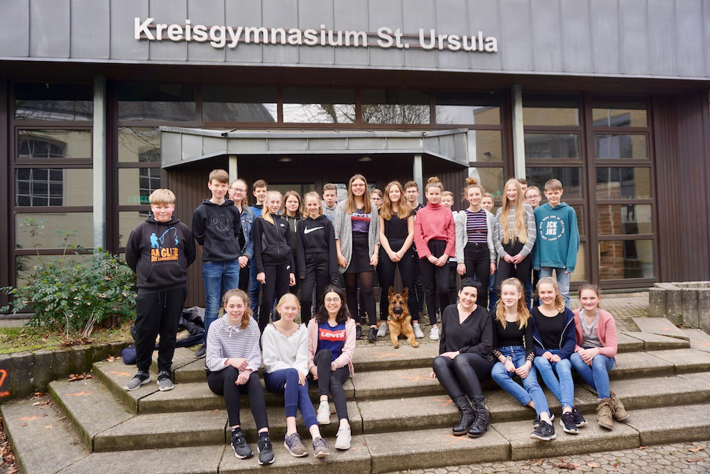 Auf Einladung einer Lehrkraft gehe ich auch in andere Unterrichtsstunden. So war ich schon in der 5. Klasse im Biologieunterricht, als sie sich thematisch mit meinen Artgenossen beschäftigt haben. Dort stand ich dann Modell und habe gezeigt, was für tolle Zähne und Pfoten ich habe.