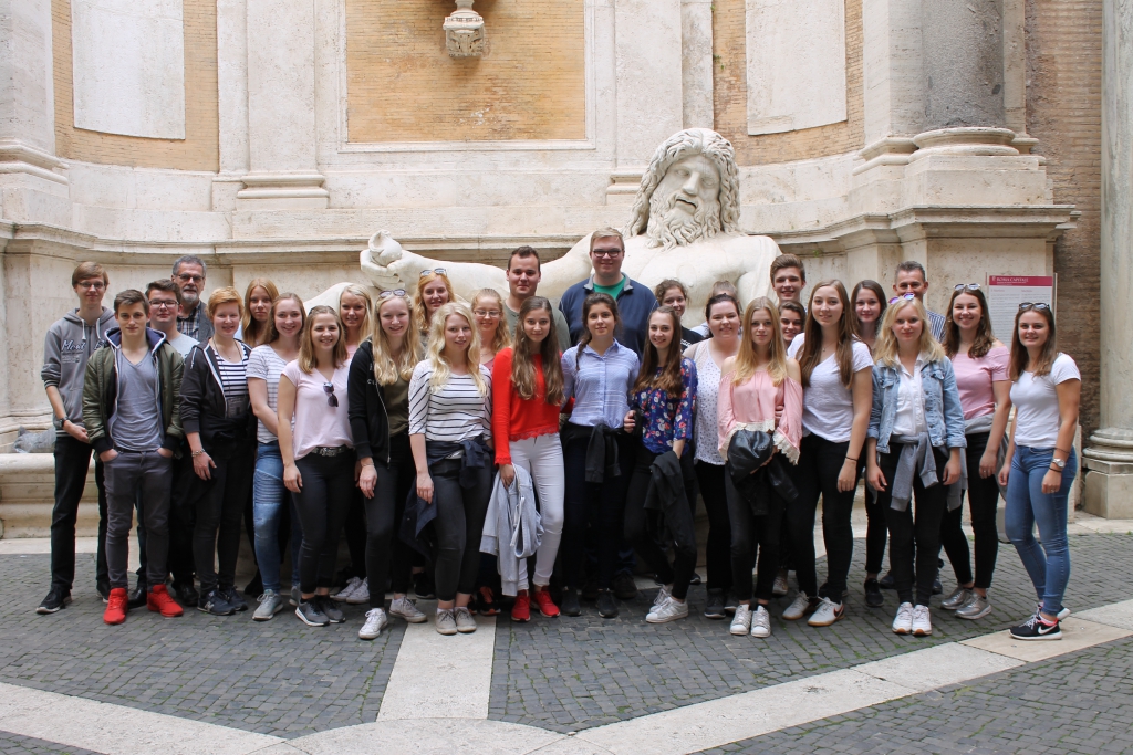Am Sonntag, den 16.10.16 machten wir uns früh morgens mit insgesamt 29 Schülern und 2 Lehrern, Herrn Anna und Herrn Berndt, auf den Weg nach Rom. Der Flug ab Düsseldorf verlief ohne Probleme, sodass wir bereits am Nachmittag zu Fuß eine erste Stadterkundung (Pantheon, Fontana di Trevi, Spanische Treppe) durch Rom machen konnten. Wie auch an allen darauf folgenden Abenden, fielen alle totmüde ins Bett.